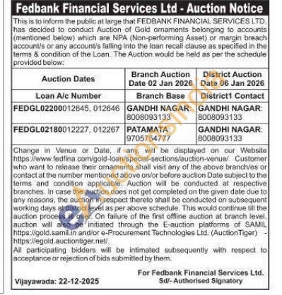 Fedbank Financial Services Ltd Gold Auctions Auction in Vijayawada