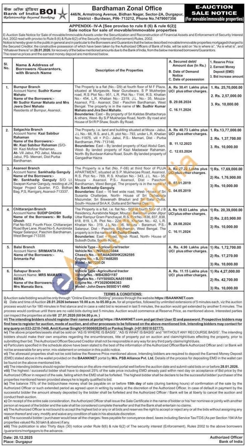 The Property is a flat (No.-D9) at fourth floor of MF Plaza, situated at Murgasole, Near Gurudwara, SP Mukherjee road, R.S Plot No.- 951, L.R. Plot No.- 1144, R.S, Khatian No. 454, L.R. Khatian No. 2319, J.L. No. 35, Mouza-Asansol, P.S.- Asansol, Dist Paschim Bardhaman, West Bengal. The property is in the name of Mr. Sudhir Kumar Mahato and Jira Devi Mahato.