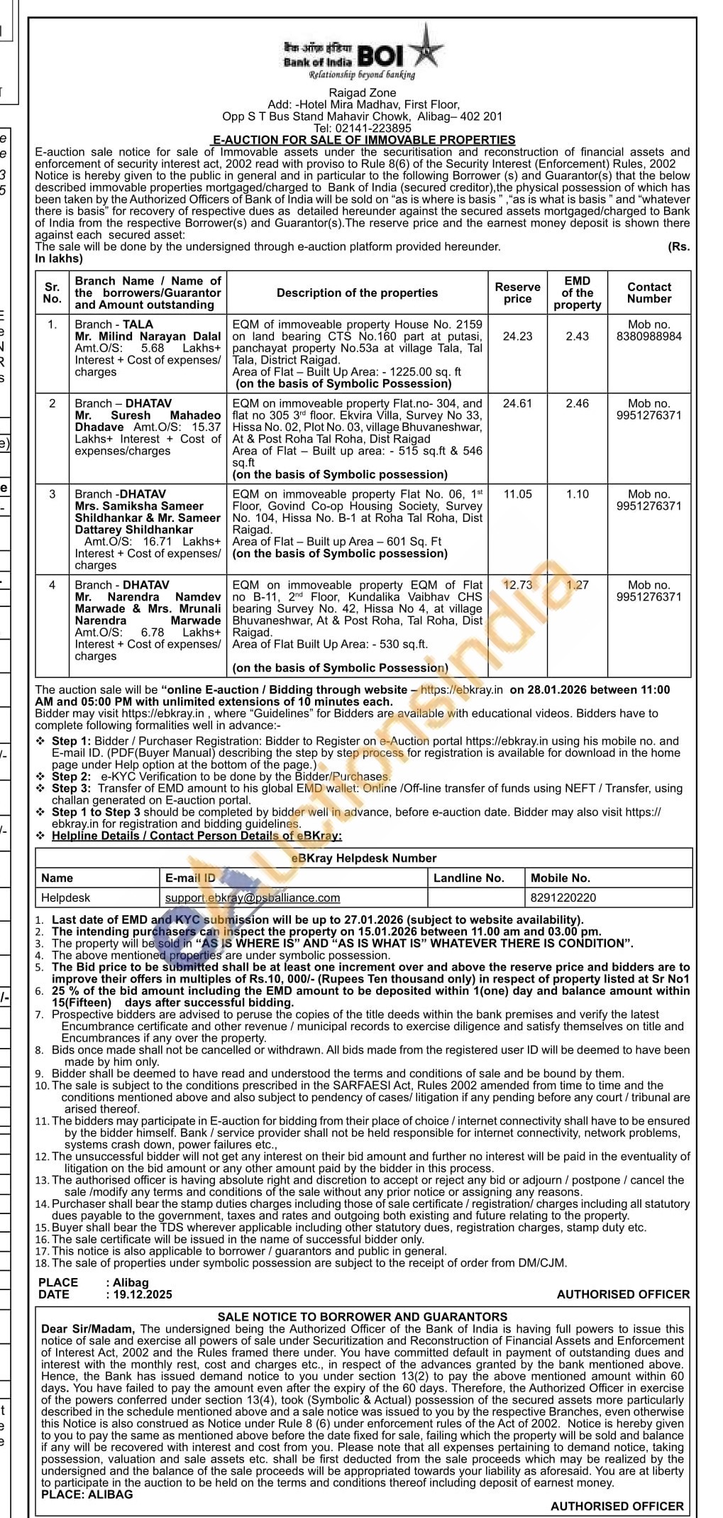 EQM on immoveable property Flat No. 06, 1st Floor, Govind Co-op Housing Society, Survey No. 104, Hissa No. B-1 at Roha Tal Roha, Dist Raigad.