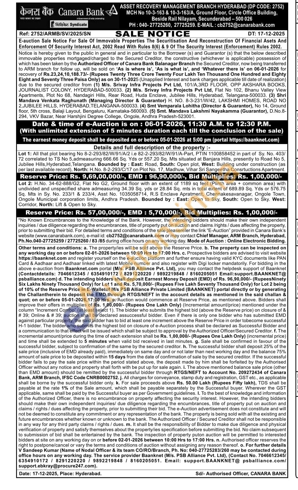 Contact number : 04027725259/27725260/83/85