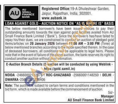 AU Small Finance Bank Gold Auctions Auction in Noida