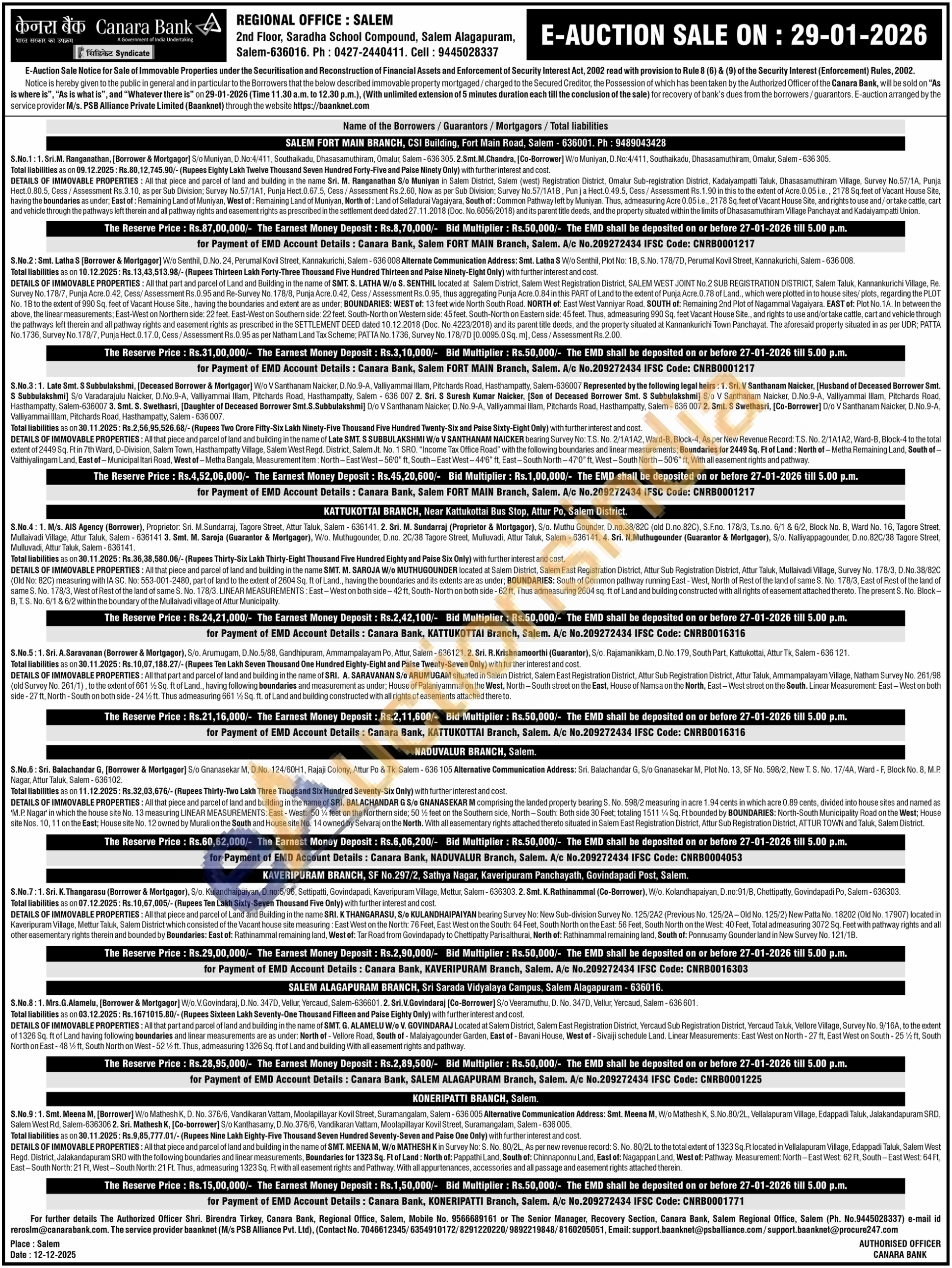 All that part and parcel of land and building in the name of SRI. A. SARAVANAN S/ ARUMUGAM situated in Salem District, Salem East Registration District, Attur Sub Registration District, Attur Taluk, Ammampalayam Village, Natham Survey No. 261/98. Survey No. 261/1), to the extent of 661 % Sq. ft of Land, having following boundaries and measurement as under; House of Palaniyammal on the West, North-South street on the East, House of Namsa on the North, East-West street on the South. Linear Measurement: East-West on both (old side-27 ft, North-South on both side-24 ft. Thus admeasuring 661 % Sq. ft. of Land and building constructed with all rights of easements attached there to