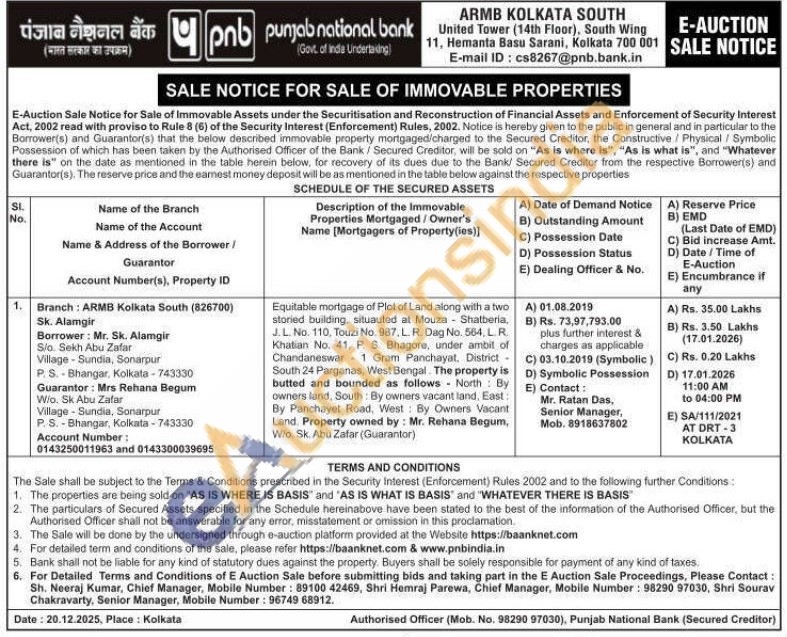 Equitable mortgage of Plot of Land along with a two storied building, situauted at Mouza - Shatberia. J. L. No. 110, Touzi No. 987, L. R. Dag No. 564, L. R Khatian No. 41, P. S. Bhagore, under ambit of Chandaneswar 1 Gram Panchayat, District-South 24 Parganas, West Bengal. The property is butted and bounded as follows North By owners land, South: By owners vacant land, East: By Panchayet Road, West By Owners Vacant Land Property owned by: Mr. Rehana Begum, Wio. Sk. Abu Zafar (Guarantor)
