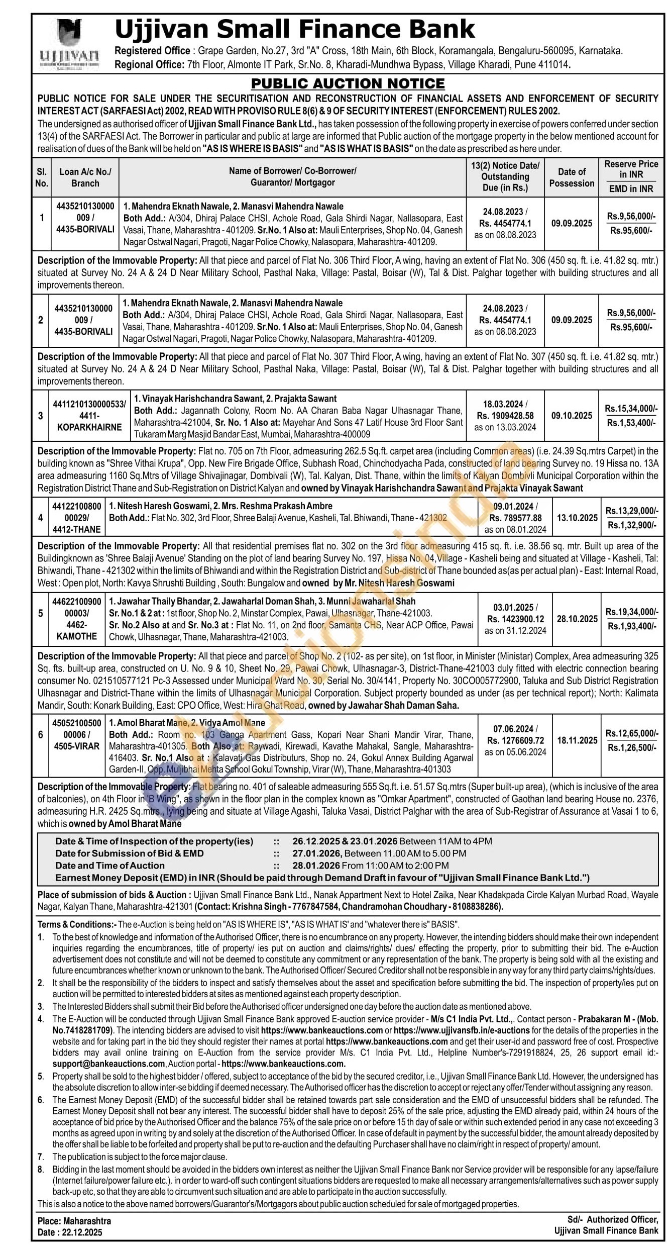 Description of the Immovable Property: All that piece and parcel of Shop No. 2 (102 as per site), on 1st floor, in Minister (Ministar) Complex, Area admeasuring 325 Sq. fts built-up area, constructed on U. No. 9 & 10. Sheet No. 29. Pawai Chowk, Ulhasnagar-3, District-Thane-421003 duly fitted with electric connection bealing consumer No. 021510577121 Po-3 Assessed under Municipal War Ward No. 30. Sertal No. 30/4141, Property No. 3000005772900, Taluka and Sub District Registration Ulhasnagar and District-Thane within the limits of Ulhasnagar Municipal Corporation. Subject property bounded as under (as per lechnical report), North: Kallmata Mandir, South Konark Buliding, East: CPOOfice, West Hira Ghat Road, owned by Jawahar Shah Daman Saha