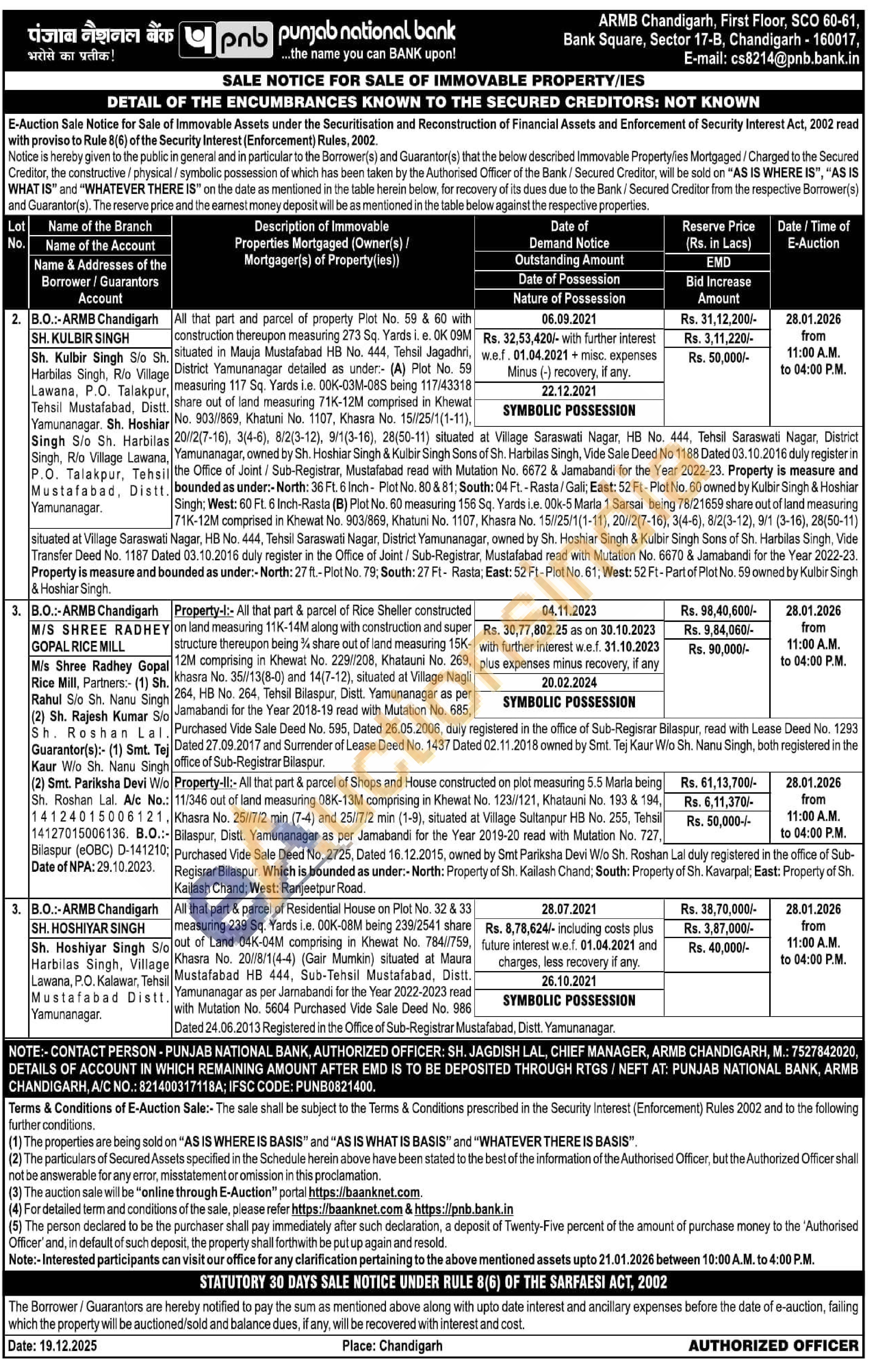 All that part & parcel of Residential House on Plot No. 32 & 33 measuring 239 Sq. Yards i.e. 00K-08M being 239/2541 share out of Land 04K-04M comprising in Khewat No. 784//759, Khasra No. 20//8/1(4-4) (Gair Mumkin) situated at Maura Mustafabad HB 444, Sub-Tehsil Mustafabad, Distt. Yamunanagar as per Jarnabandi for the Year 2022-2023 read with Mutation No. 5604 Purchased Vide Sale Deed No. 986 Dated 24.06.2013 Registered in the Office of Sub-Registrar Mustafabad, Distt. Yamunanagar.