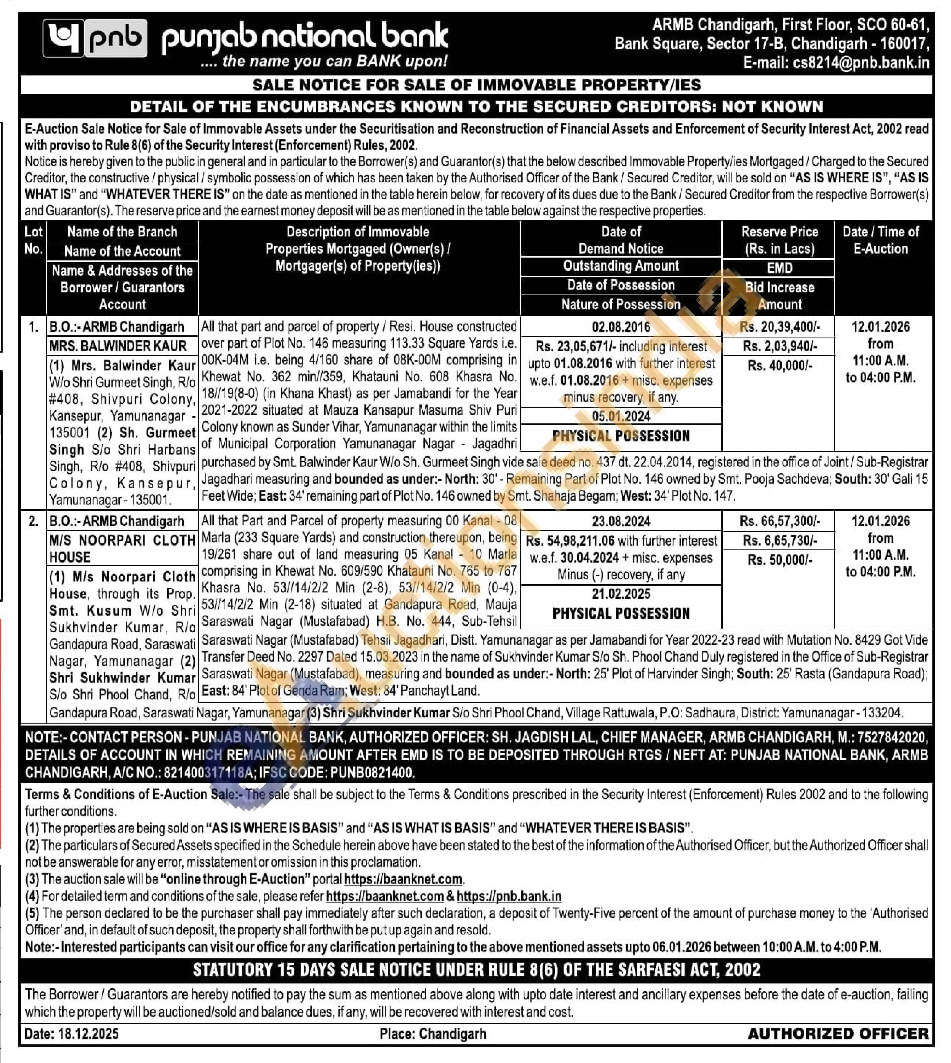 All that Part and Parcel of property measuring 00 Kanal - 08 19/261 share out of land measuring 05 Kanal 10 Marla comprising in Khewat No. 609/590 Khatauni No. 765 to 767 . Khasra No. 53//14/2/2 Min (2-8), 53/14/2/2 Min (0-4). Shri 53//14/2/2 Min (2-18) situated at Gandapura Road, Mauja Rio Saraswati Nagar (Mustafabad) H.B. No. 444, Sub-Tehsil Saraswati Nagar (Mustafabad) Tehsil Jagadhari, Distt. Yamunanagar as per Jamabandi for Year 2022-23 read with Mutation No. 8429 Got Vide 2) Transfer Deed No. 2297 Dated 15.03.2023 in the name of Sukhvinder Kumar S/o Sh. Phool Chand Duly registered in the Office of Sub-Registrar Kumar Saraswati Nagar (Mustafabad), measuring and bounded as under:- North: 25' Plot of Harvinder Singh; South: 25' Rasla (Gandapura Road); Rio East: 84' Plot of Genda Ram; West: 84' Panchayt Land.