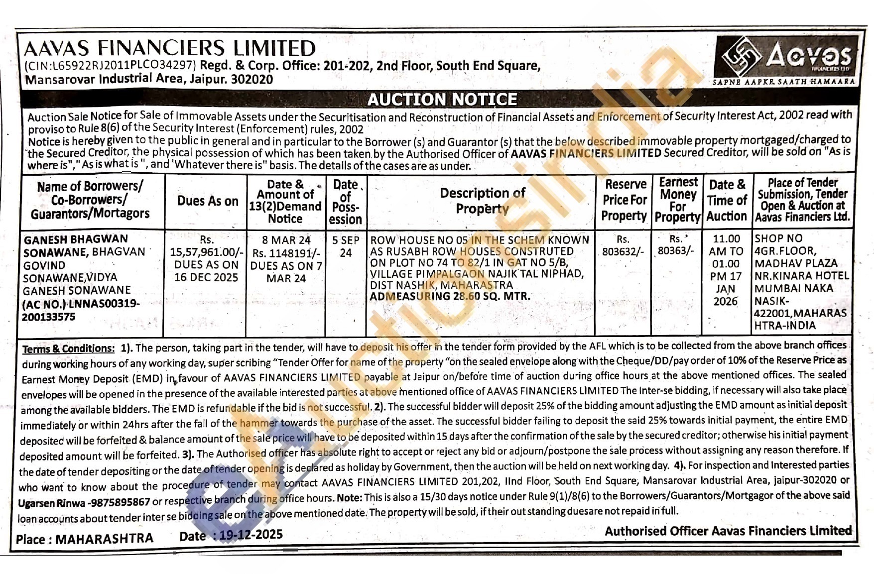 ROW HOUSE NO 05 IN THE SCHEM KNOWN AS RUSABH ROW HOUSES CONSTRUTED ON PLOT NO 74 ΤΟ 82/1 IN GAT NO 5/B, VILLAGE PIMPALGAON NAJIK TAL NIPHAD, DIST NASHIK, MAHARASTRA ADMEASURING 28.60 SQ. MTR
