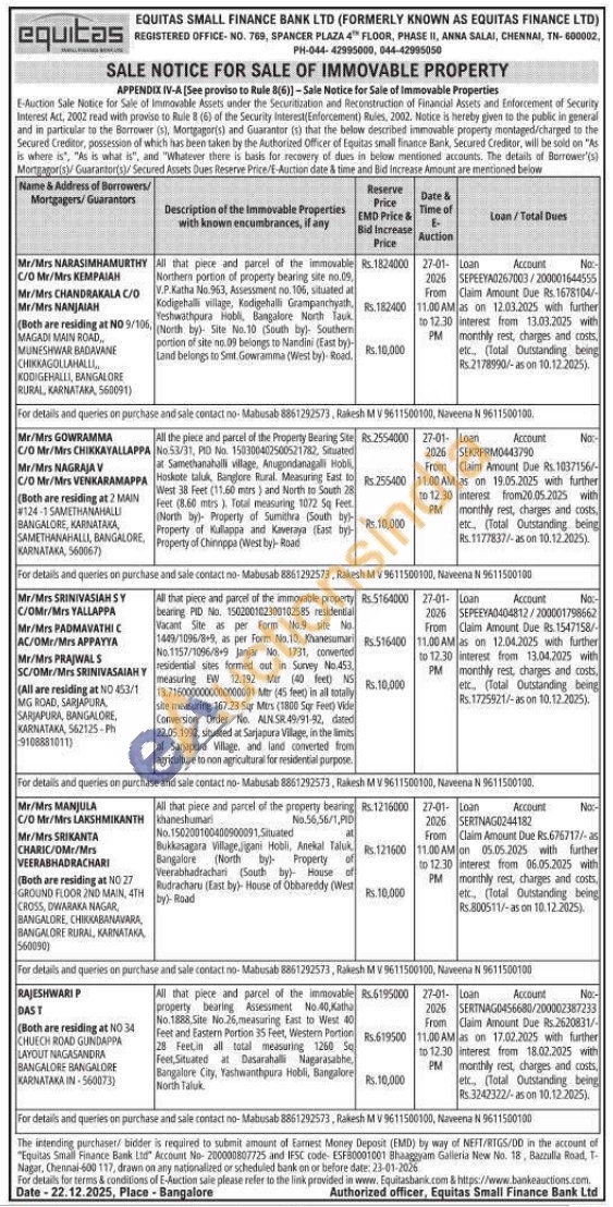 All that piece and parcel of the immovable property bearing PID No. 150200102300102585 residential Vacant Site as per Form No.9 site No. 1449/1096/8+9, as per Form No.10, Khanesumari No.1157/1096/8+9 Janjar No. 1731, converted residential sites formed out in Survey No.453, measuring EW 12.192 Mtr (40 feet) NS 13.7160000000000000001 Mtr (45 feet) in all totally site measuring 167.23 Sqr Mtrs (1800 Sqr Feet) Vide Conversion Order No. ALN SR.49/91-92, dated 22.05.1992, situated at Sarjapura Village, in the limits of Sarjapura Village, and land converted from agriculture to non agricultural for residential purpose