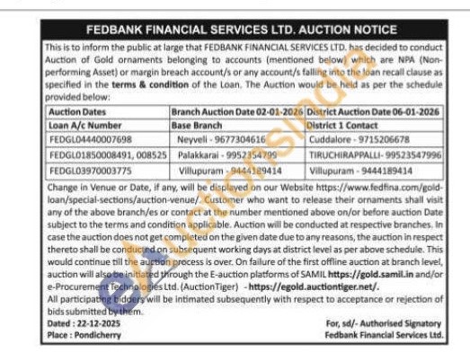 Fedbank Financial Services Ltd Gold Auctions Auction in Cuddalore