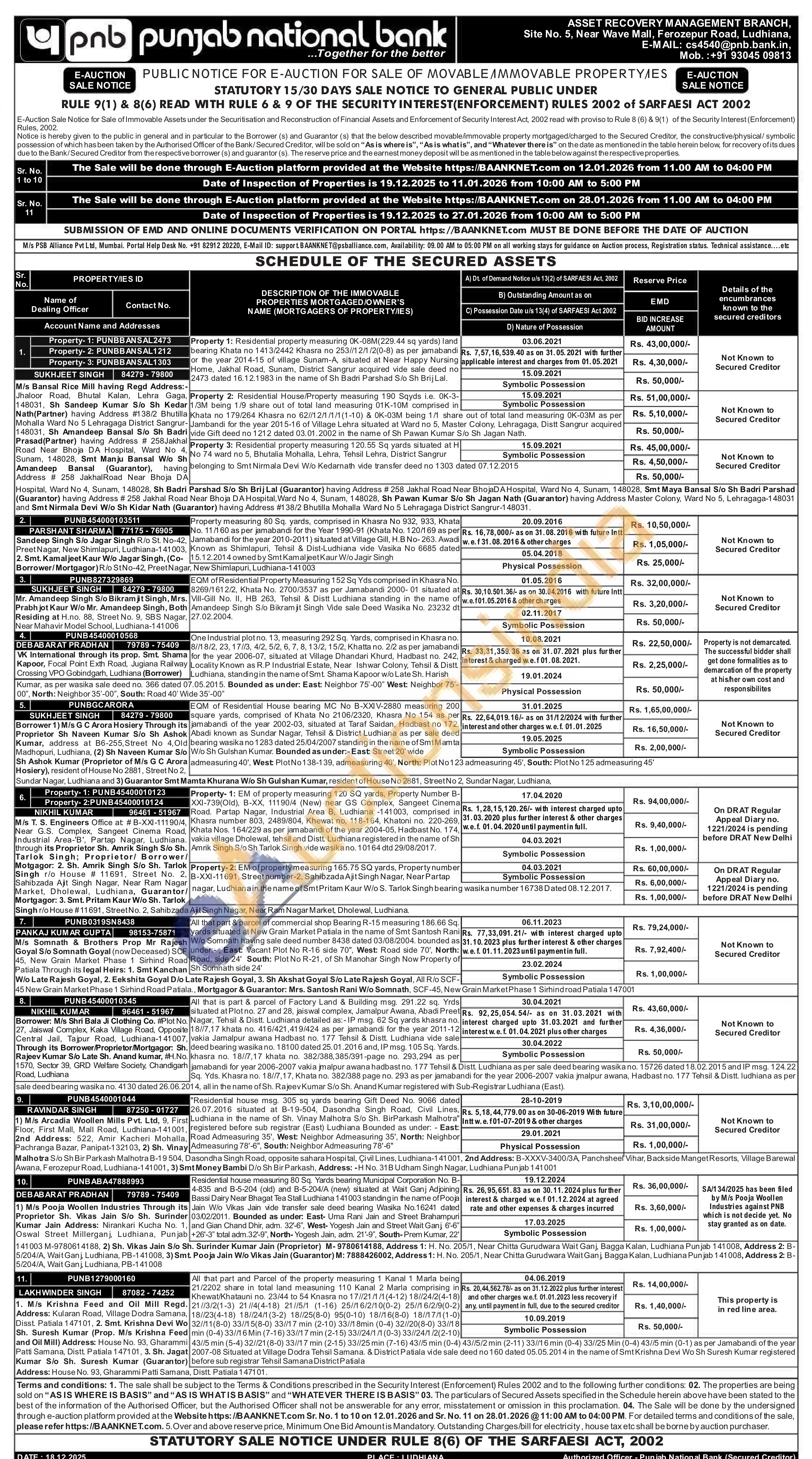 EM of property measuring 120 SQ yards, Property Number B-XXI-739(Old), B-XX, 11190/4 (New) near GS Complex, Sangeet Cinema Road. Partap Nagar, Industrial Area B. Ludhiana -141003, comprised in Khasra number 803, 2489/804, Khewat no, 118-164, Khatoni no. 220-269, Khata Nos. 164/229 as per jamabandi of the year 2004-05, Hadbast No. 174, vakia village Dholewal, tehsil and Distt. Ludhiana registered in the name of Sh Amrik Singh S/o Sh Tarlok Singh vide wasikano. 10164 dtd 29/08/2017