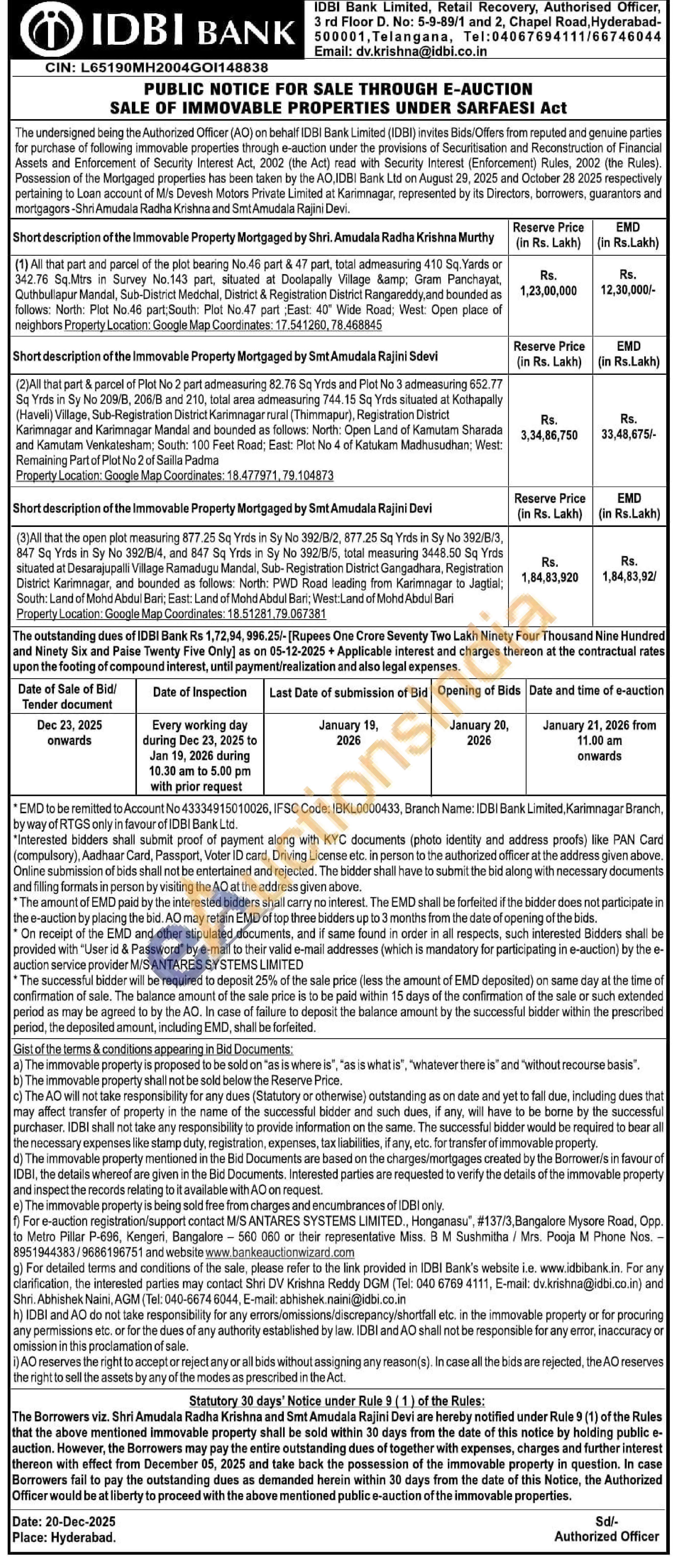 (2)All that part & parcel of Plot No 2 part admeasuring 82.76 Sq Yrds and Plot No 3 admeasuring 652.77 Sq Yrds in Sy No 209/B, 206/B and 210, total area admeasuring 744.15 Sq Yrds situated at Kothapally (Haveli) Village, Sub-Registration District Karimnagar rural (Thimmapur), Registration District Karimnagar and Karimnagar Mandal and bounded as follows: North: Open Land of Kamutam Sharada and Kamutam Venkatesham; South: 100 Feet Road; East: Plot No 4 of Katukam Madhusudhan; West: Remaining Part of Plot No 2 of Sailla Padma