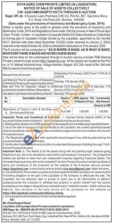 Sale of Factory Land & Building with furniture and fixtures