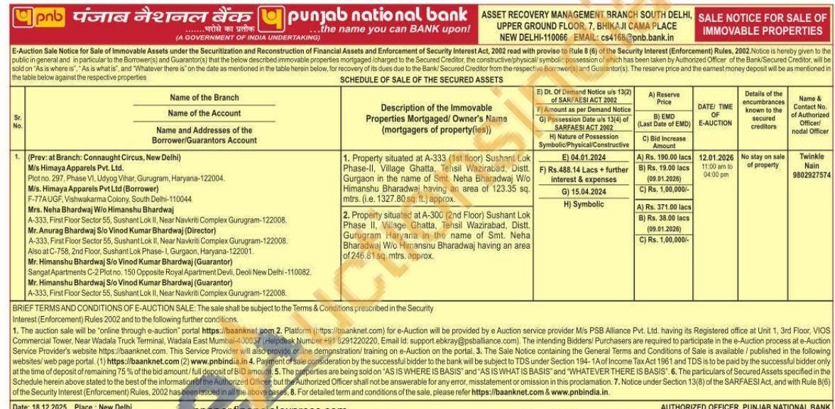 Property situated at A-300 (2nd Floor) Sushant Lok Phase II, Village Ghatta, Tehsil Wazirabad, Distt. Gurugram Haryana in the name of Smt. Neha Bharadwaj W/o Himanshu Bharadwaj having an area of 246,81 sq. mtrs. approx.