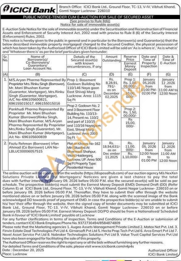 Godown No. 2 and 3 Basement Floor Building No. 110/13-14. Present no. 110/2 and part of 110/15 and 110/16 Nayagaon East, Shivaji Marg Lucknow. Area 2000 Sq Ft