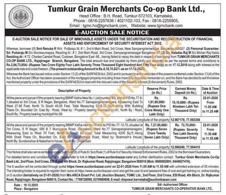 All the piece and parcel of the property bearing BBMP Katha new No.70 and its PID No.77-12-70, situated at 7rd Cross, SR Nagar, SRI BT Muniyappa Road, Bangalore, Ward No.77 Samapangiramanagara. Measuring East to West 70 Feet, North to South 60 Feet. Total Measuring 4200 Sq.ft Along With Shed There On, Bounded On. East By: Government Road, West by: Brahmaih's House, North By: Sundareshan & Nateshan's House, South By: Crossroad.