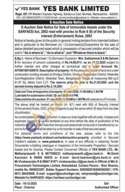 All the piece and parcel of land and under construction building situated at Dindigul District, Dindigul Registration District, Nilakottai Sub-Plegistration District, Nilakottai Town, Bangalapatti Village all measuring 990 sq.ft 91.97 Sq. Metre Cent 2.27.