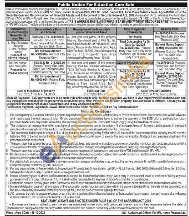 All that part and parcel of the property bearing. Residential part of Plot No. 53. bearing al Khasra No. 357 situated at Deop Nagar, Mauza Bodla Tehsil & Distt. Agra. Uttar Pardesh, 282007, Area Admeasuring (in Sq. Ft): Property Type: Area Admeasuring Property Area: 1130.00