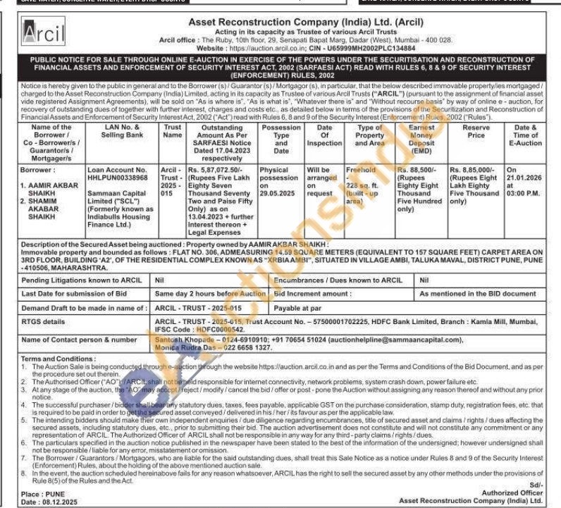Immovable property and bounded as follows: FLAT NO. 306, ADMEASURING 14.59 SQUARE METERS (EQUIVALENT TO 157 SQUARE FEET) CARPET AREA ON 3RD FLOOR, BUILDING A2', OF THE RESIDENTIAL COMPLEX KNOWN AS "XRBIA AMBI, SITUATED IN VILLAGE AMBI, TALUKA MAVAL, DISTRICT PUNE, PUNE -410506, MAHARASHTRA