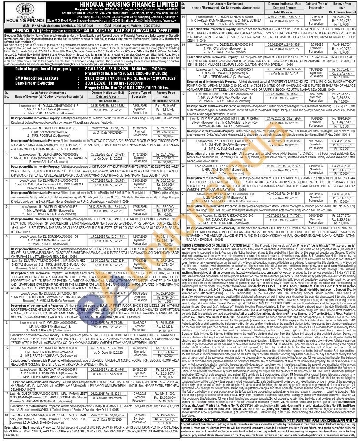Description of the Immovable Property: All that piece and parcel of Built on PlotNo. 107 & 107-B, Third Floor Middle Unit (2BHK), with roof rights, area measuring 53 Sq. Yds., out of total area measuring 203 Sq. Yds., out of Khasra No.25/6, Situated in the revenue estate of village Razapur Khurd, colony known as Block-PExtn., Mohan Garden, Near PUHC, Uttam Nagar, New Delhi-110059