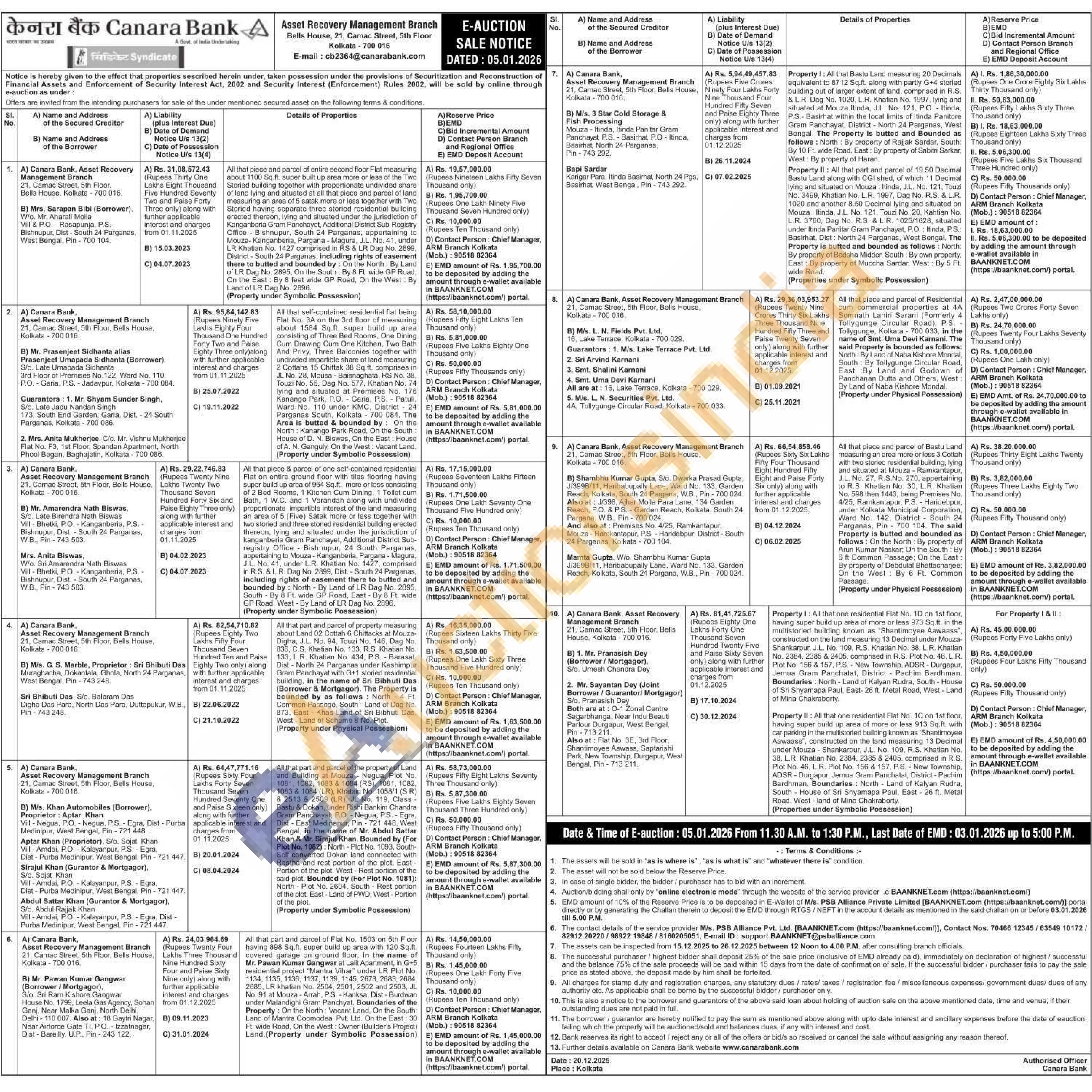 All that self-contained residential flat being Flat No. 3A on the 3rd floor of measuring about 1584 Sq.ft. super build up area consisting of Three Bed Rooms. One Dining Cum Drawing Cum One Kitchen, Two Bath And Privy. Three Balconies together with undivided impartible share of land measuring 2 Cottahs 15 Chittak 38 Sq.ft. comprises in JL No. 28, Mousa - Baisnaghata, RS No. 38, Touzi No. 56, Dag No. 577, Khatian No. 74 lying and situated at Premises No. 176 Kanango Park, P.O. Garia, P.S. Patuli, Ward No. 110 under KMC, District 24 Parganas South, Kolkata 700 084. The Area is butted & bounded by: On the North: Kanango Park Road, On the South House of D. N. Biswas, On the East: House of A. N. Ganguly, On the West: Vacant Land. (Property under Symbolic Possession)
