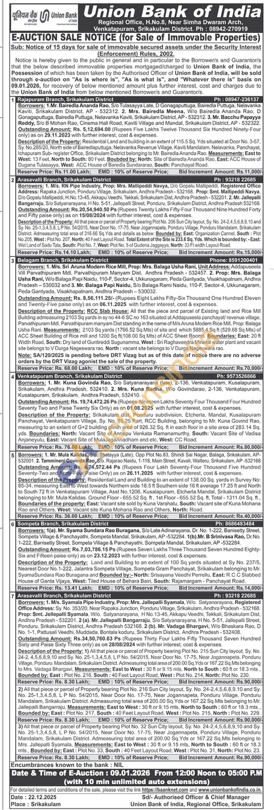 Description of the Property: Residential Land and building in an extent of 115.5 Sq. Yds situated at Door No. 3-57, Sy. No.285/20, North side of Bairedlaputtuga, Nelavanka Revenue Village, Kaviti Mandalam, Nelavanka, Panchayat, Ichapuram Sub-register Office, Srikakulam District belonging to Mr. Bairedla Ananda Rao. Measurements: East to West: 13 Feet, North to South: 80 Feet. Boubded by: North: Site of Bairedla Ananda Rao. East: ACC House of Dugana Tulasayya, West: ACC House of Baredla Sundararao, South: Panchayat Road