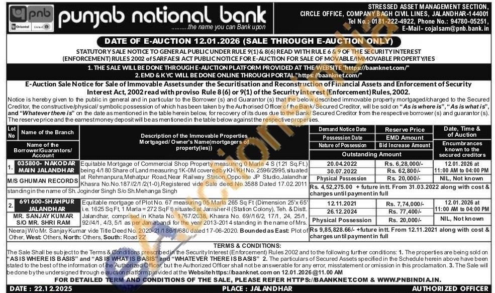 Equitable Mortgage of Commercial Shop Property measuring 0 Marla 4 S (121 Sq.Ft.) being 4/1 80 Share of Land measuring 1K-OM covered by KH/KH No. 2596/2995, situated at Rehmanpura, Mehatpur Road, Near Railway Station, Opposite JP Studio, Jalandhar Khasra No.No.187//2/1/2(1-0), Registered vide Sale deed No. 3588 Dated 17.02. 2011 standing in the name of Sh.Joginder Singh S/o Sh.Mehanga Singh