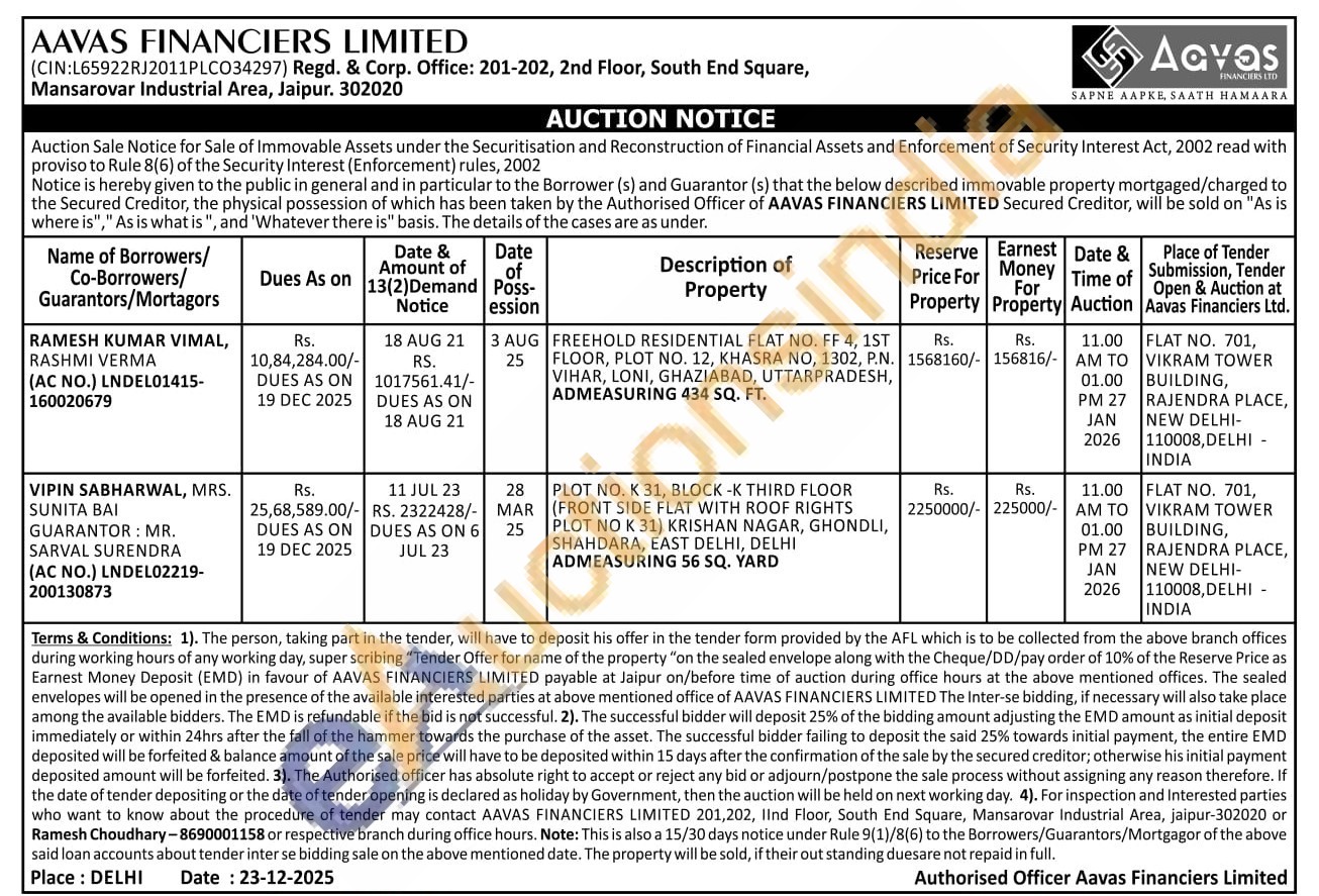 PLOT NO. K 31, BLOCK-K THIRD FLOOR (FRONT SIDE FLAT WITH ROOF RIGHTS PLOT NO K 31) KRISHAN NAGAR, GHONDLI, SHAHDARA, EAST DELHI, DELHI ADMEASURING 56 SQ. YARD