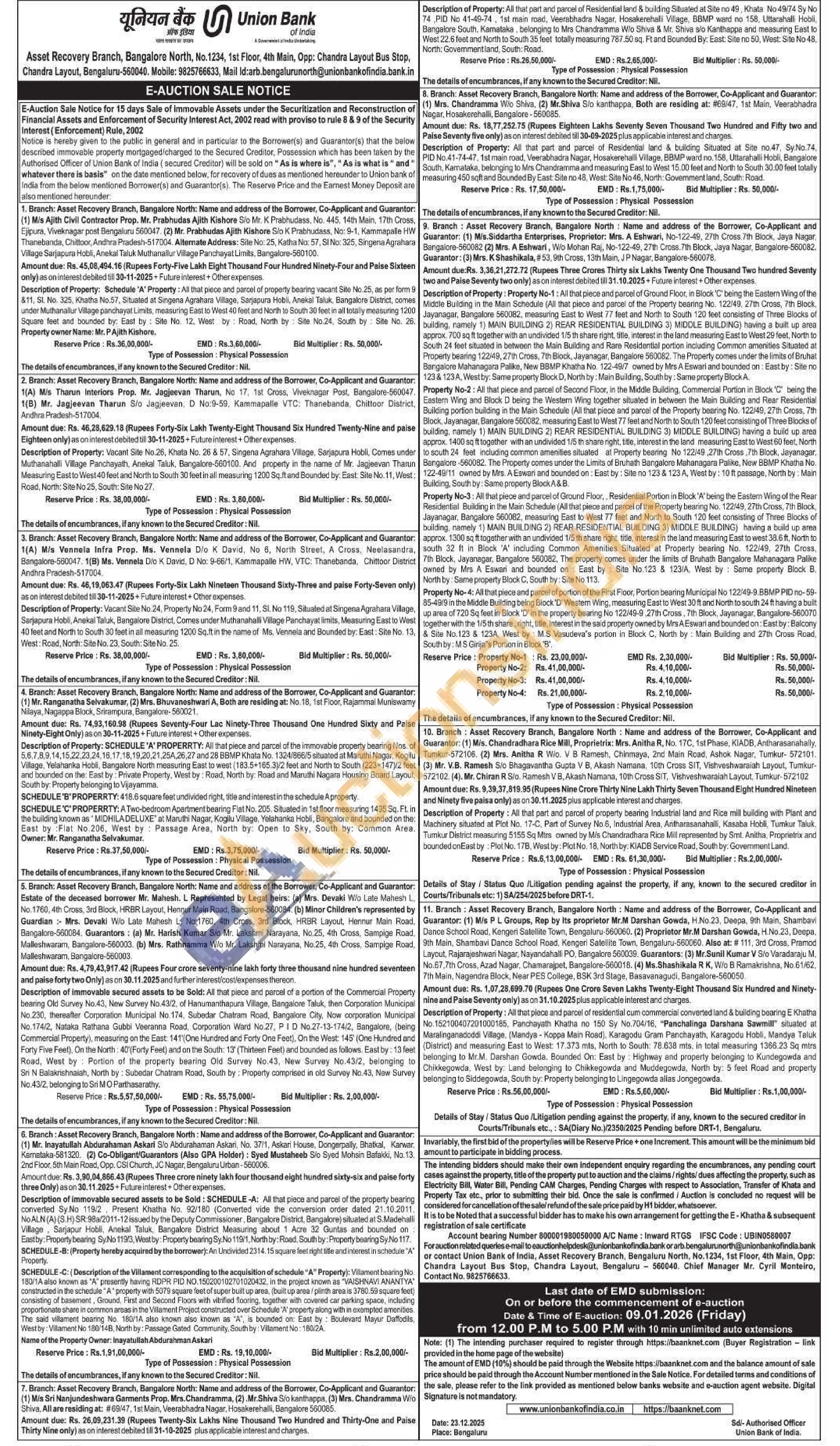 Description of Property: All that piece and parcel of residential cum commercial converted land & building bearing E Khatha No.152100407201000185, Panchayath Khatha no 150 Sy No.704/16, "Panchalinga Darshana Sawmill" situated at Maralinganadoddi Village, (Mandya - Koppa Main Road). Karagodu Gram Panchayath, Karagodu Hobli, Mandya Taluk (District) and measuring East to West: 17.373 mls, North to South: 78.638 mts, in total measuring 1366.23 Sq mtrs belonging to Mr.M. Darshan Gowda, Bounded On: East by Highway and property belonging to Kundegowda and Chikkegowda, West by: Land belonging to Chikkegowda and Muddegowda, North by: 5 feet Road and property belonging to Siddegowda, South by: Property belonging to Lingegowda alias Jongegowda.