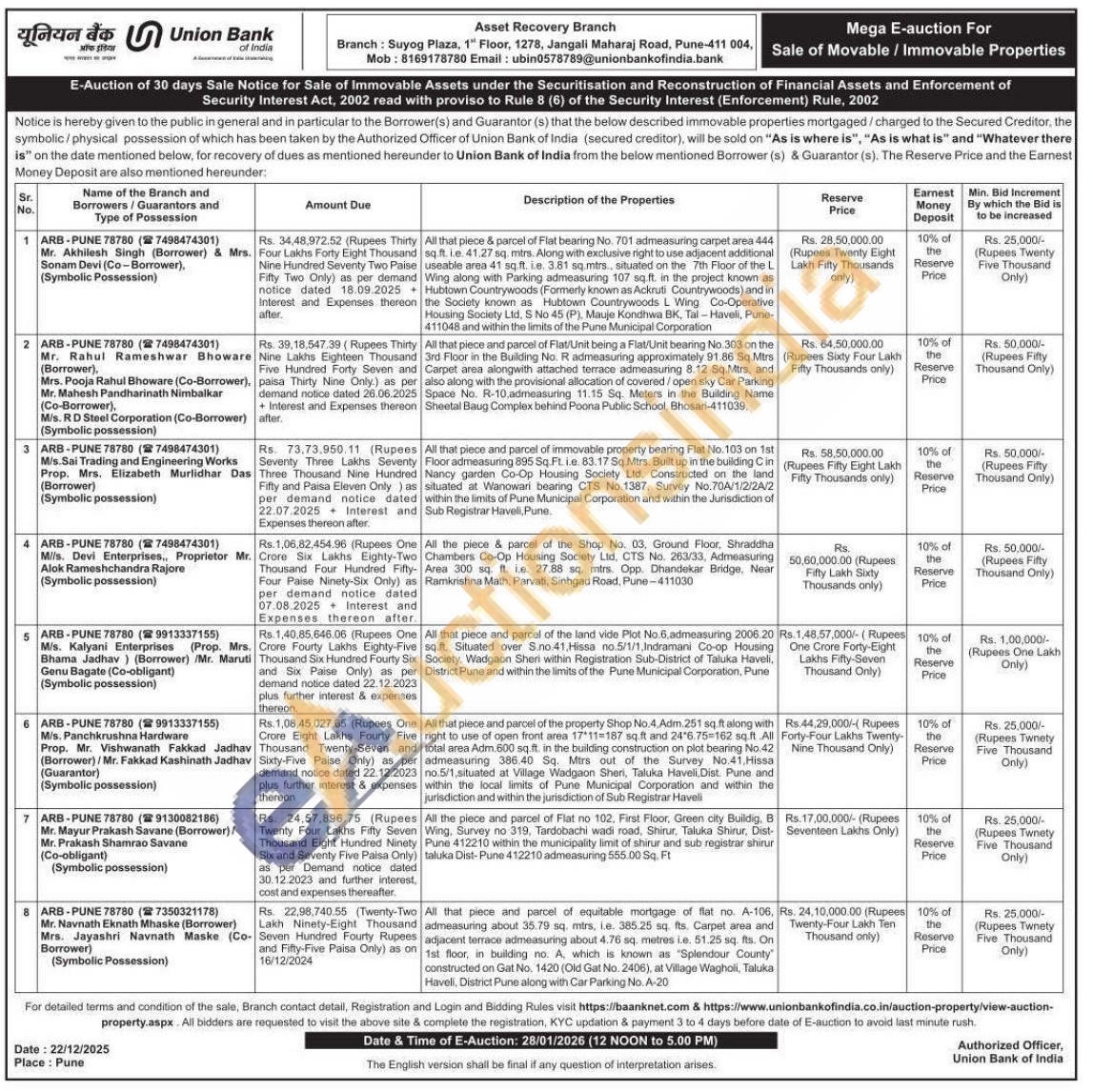 • Auction Start Date :  28-01-2026 12:00 PM