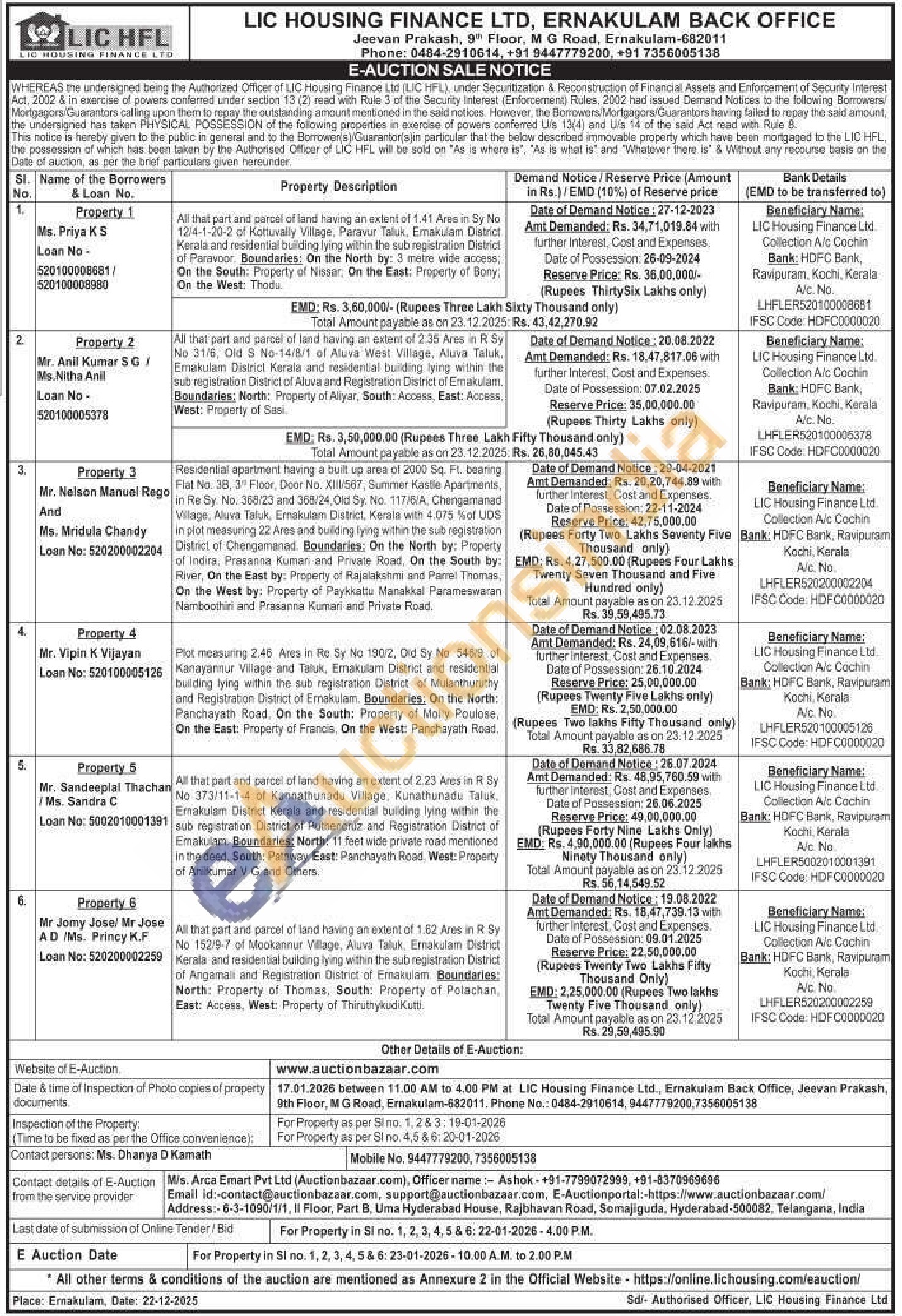 All that part and parcel of land having an extent of 1.41 Ares in Sy No 1214-1-20-2 of Kottuvally Village, Vill Parvur Taluk, Ernakulam District Kerala and residential building lying within the sub registration District of Paravoor. Boundaries: On the North by: 3 metre wide access On the South. Property of Nissar, On the East: Property of Bony On the West: Thod
