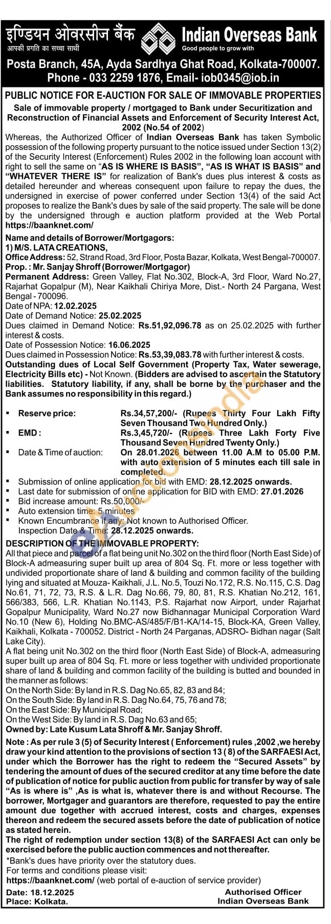 All that piece and parcel of a flat being unit No.302 on the third floor (North East Side) of Block-A admeasuring super built up area of 804 Sq. Ft. more or less together with undivided proportionate share of land & building and common facility of the building lying and situated at Mouza- Kaikhali, J.L. No.5, Touzi No. 172, R.S. No.115, C.S. Dag No.61, 71, 72, 73, R.S. & L.R. Dag No.66, 79, 80, 81, R.S. Khatian No.212, 161, 566/383, 566, L.R. Khatian No.1143, P.S. Rajarhat now Airport, under Rajarhat Gopalpur Municipality, Ward No.27 now Bidhannagar Municipal Corporation Ward No.10 (New 6), Holding No.BMC-AS/485/F/B1-KA/14-15, Block-KA, Green Valley, Kaikhali, Kolkata - 700052. District - North 24 Parganas