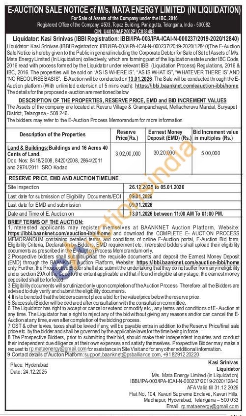 Land & Buildings: Buildings and 16 Acres 40 Cents of Land. Doc. Nos: 8418/2008, 8420/2008, 2864/2011 and 2974/2011. SRO Kodad