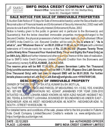 ALL THAT PROPERTY PIECE AND PARCEL OF MEASURING 101-1/3 SQ. YDS. KHASRA NO. 927-928 KHEWAT/KHATAUNI NO. 420497 JAMABANDI FOR YEAR 2009-2010 SITUATED VILLAGE LOHARA ABADI KNOWN AS NEW AZAD NAGAR HADBAST NO. 260, TEHSIL & DISTRICT LUDHIANA, BOUNDED BY BOUNDARIES AS UNDER: EAST-NEIGHBOUR ADM. 48, WEST-NEIGHBOURADM. 48, NORTH-NEIGHBOUR ADM. 19, SOUTH-STREET 18 WIDEADM. 19.