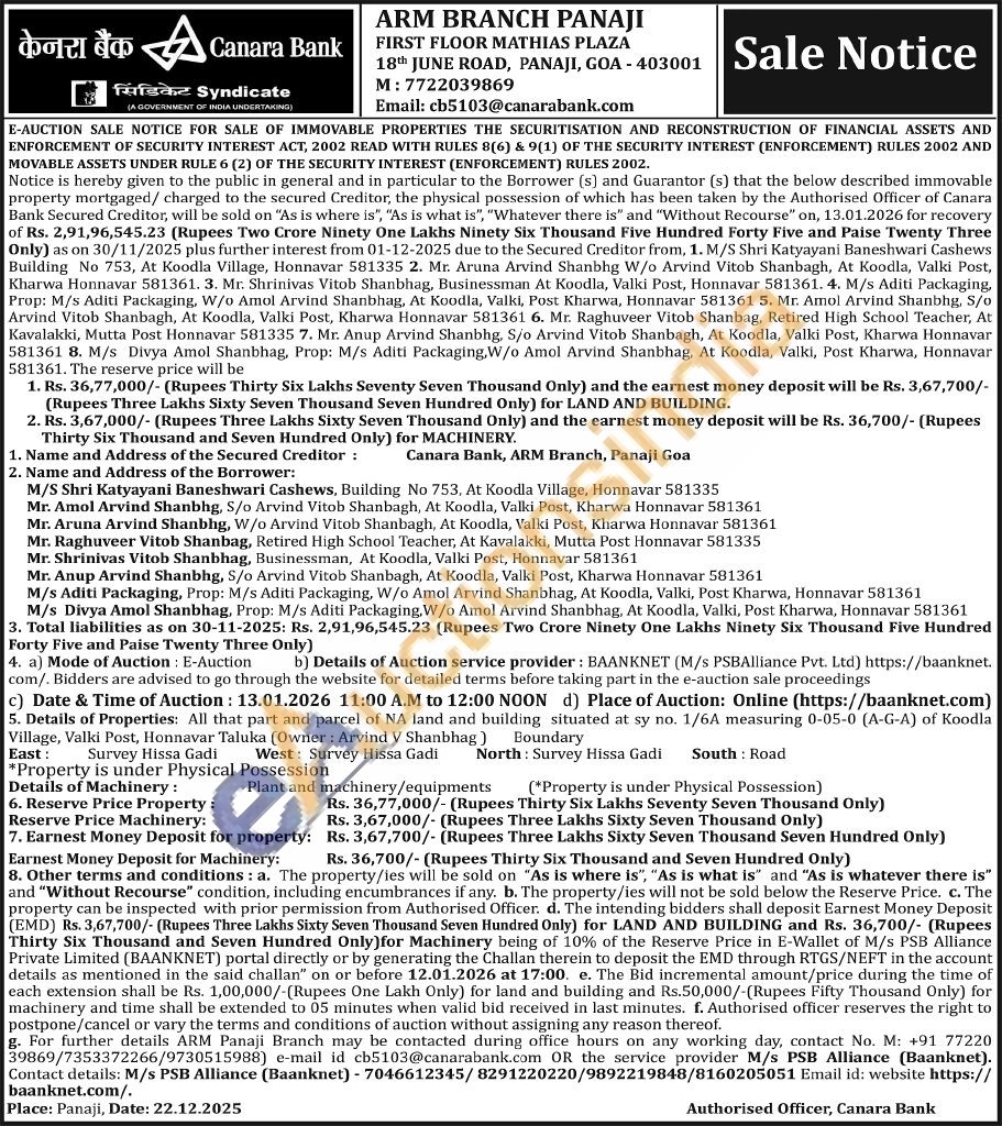 All that part and parcel of NA land and building situated at sy no. 1/6A measuring 0-05-0 (A-G-A) of Koodla Village, Valki Post, Honnavar Taluka (Owner: Arvind V Shanbhag)