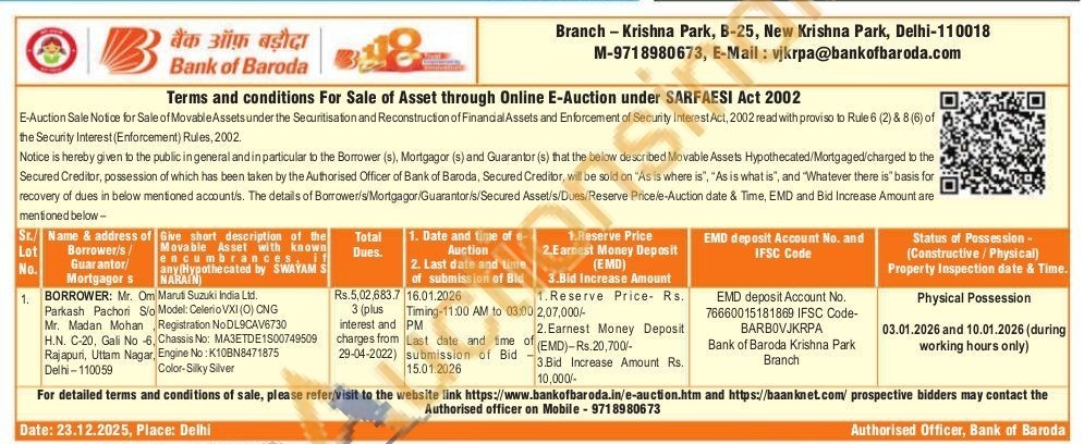 Maruti Suzuki India Ltd. Model: Celerio VXI (O) CNG Registration NoDL9CAV6730 , Chassis No: MA3ETDE1500749509 , Engine No: K10BN8471875 Color-Silky Silver