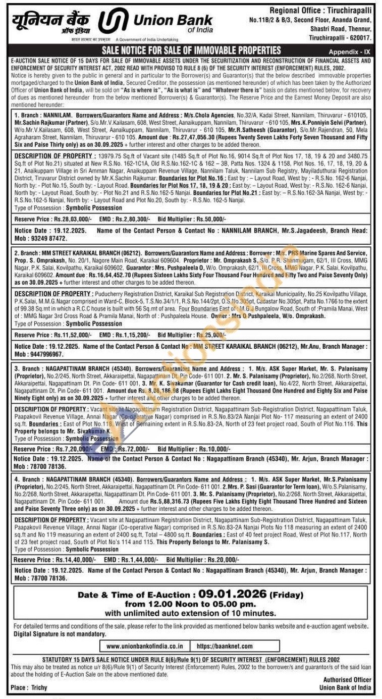 DESCRIPTION OF PROPERTY: Puducherry Registration District, Karaikal Sub Registration District, Karaikal Municipality, No.25 Kovilpathu Village, P.K.Salai, M.M.G.Nagar comprised in Ward-C, Block-5, T.S.No. 34/1/1, R.S.No. 144/2pt, O.S.No.305pt, Cadastar No.305pt. Patta No. 1766 to the extent of 99.38 Sq.mt in which a R.C.C house is built with 56 Sq.mt of area. Four Boundaries East of: M.G.J Bungalow Road, South of: Pramila Manai, West of: MMG Nagar 3rd Cross Road & Pramila Manai, North of Pushpaleela House. Owner: Mrs 0 Pushpaleela, W/o. Omprakash