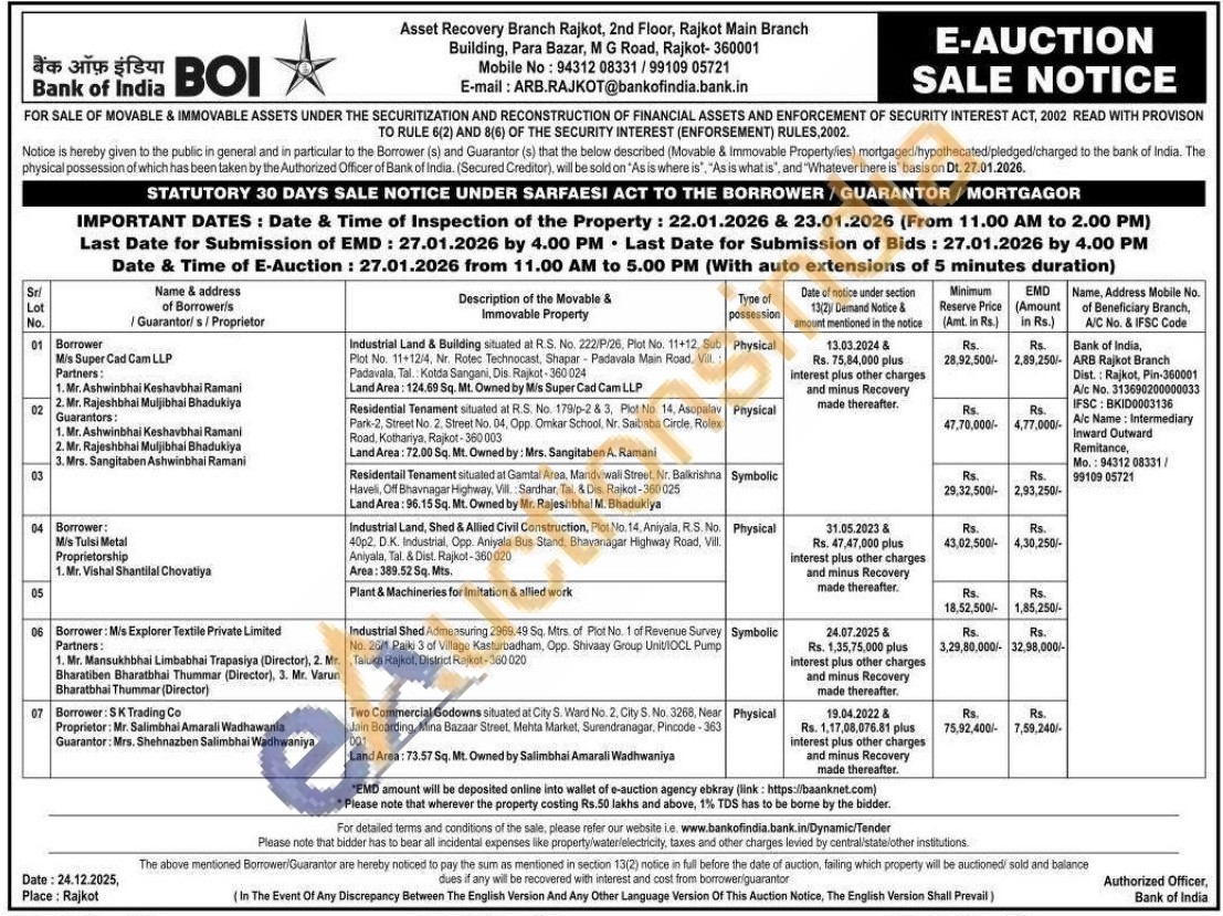 ARB Rajkot Branch Mobile No : 9431208331 / 9910905721