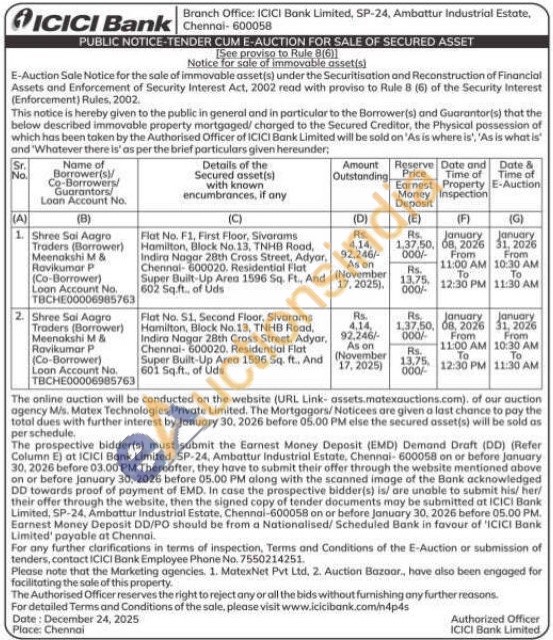Flat No.S1, Second Floor, Sivarams Hamilton, Block No. 13, TNHB Road, Indira Nagar 28th Cross Street, Adyar, Chennai-600020. Residential Flat Super Built-Up Area 1596 Sq. ft. And 601 Sq.ft. of Uds