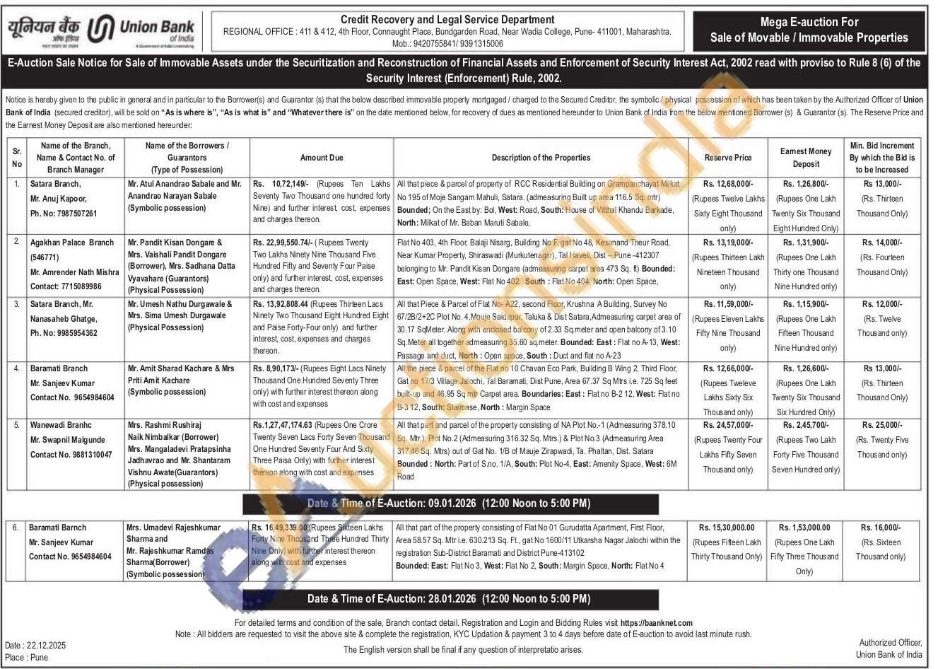 All that piece & parcel of property of RCC Residential Building on Grampanchayat Milkat No 195 of Moje Sangam Mahuli, Satara. (admeasuring Built up area 116.5 Sq. mtr) Bounded; On the East by: Bol, West: Road, South: House of Vitthal Khandu Barkade, North: Milkat of Mr. Baban Maruti Sabale,