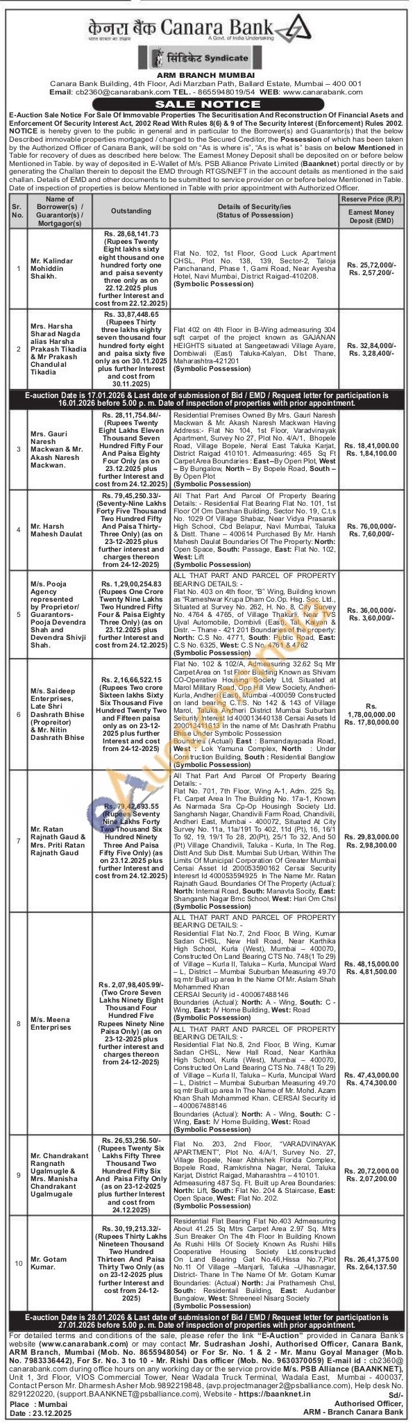 Flat No. 102 & 102/A, Admeasuring 32.62 Sq Mtr CarpetArea on 1st Floor Building Known as Shivam CO-Operative Housing Society Ltd, Situated at Marol Military Road, Opp Hill View Society, Andheri-Kurla, Andheri (East), Mumbai-400059 Constructed on land bearing C.T.S. No 142 & 143 of Village Marol, Taluka Andheri District Mumbai Suburban Security Interest Id 400013440138 Cersai Assets Id 200013411613 In the name of Mr. Dashrath Prabhu Bhise Under Symbolic Possession Boundries (Actual) East Bamandayapada Road, West Lok Yamuna Complex, North Under Construction Building, South: Residential Banglow (Symbolic Possession)