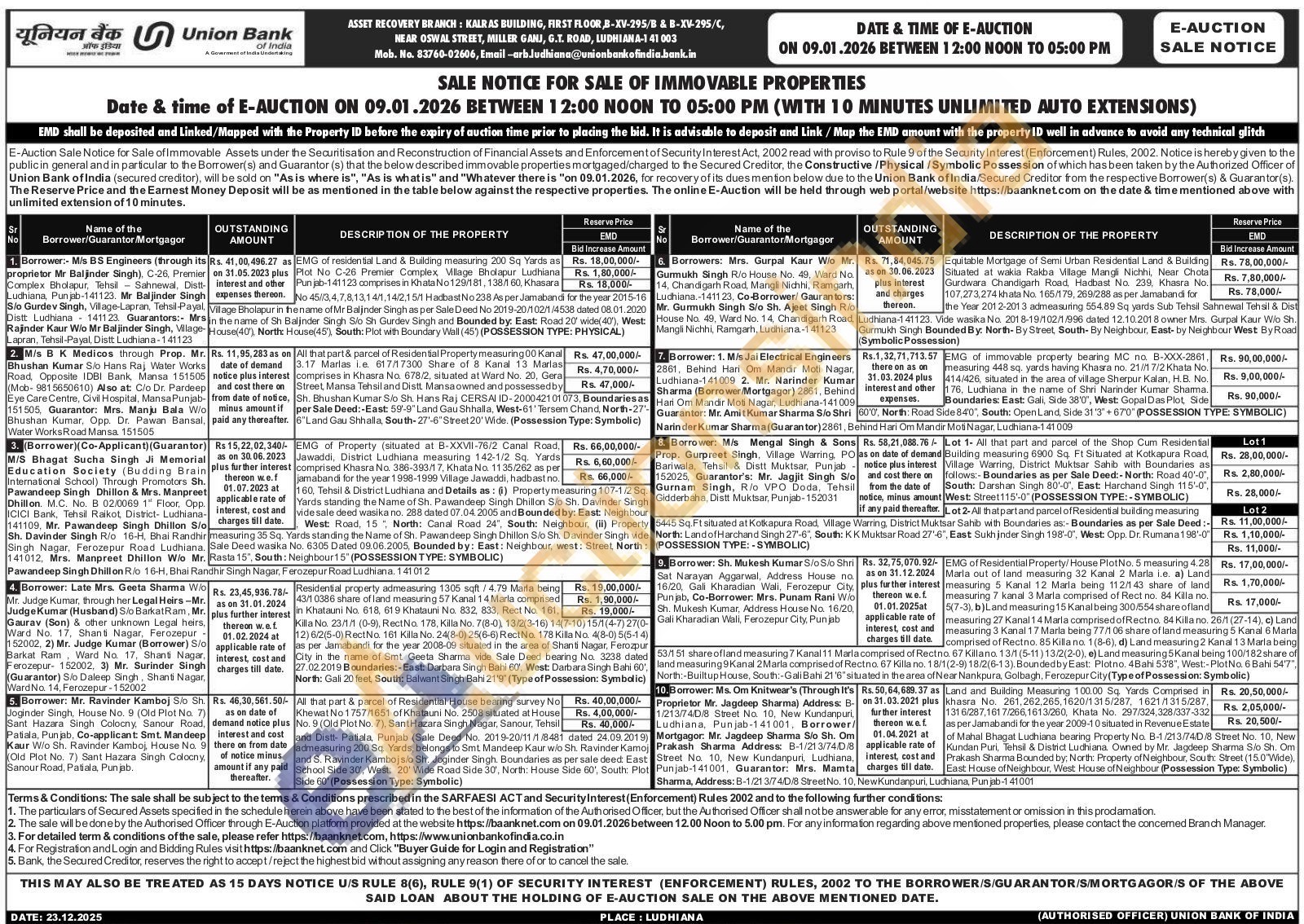 Contact No : 83760-02606, Email-arb.Judhiana@unionbankofindia.bank.in