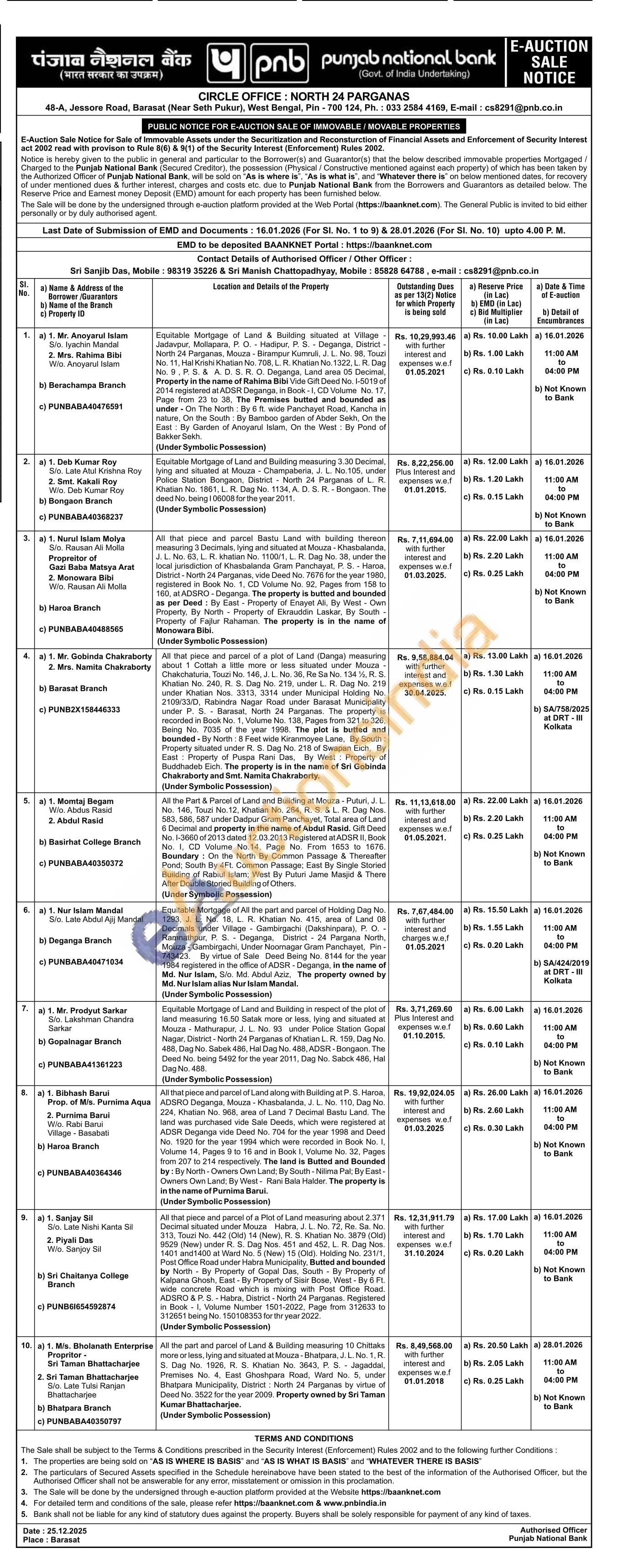 All the part and parcel of Land & Building measuring 10 Chittaks more or less, lying and situated at Mouza - Bhatpara, J. L. No. 1, R. S. Dag No. 1926, R. S. Khatian No. 3643, P. S. - Jagaddal, Premises No. 4, East Ghoshpara Road, Ward No. 5, under Bhatpara Municipality, District : North 24 Parganas by virtue of Deed No. 3522 for the year 2009. Property owned by Sri Taman Kumar Bhattacharjee. (Under Symbolic Possession)