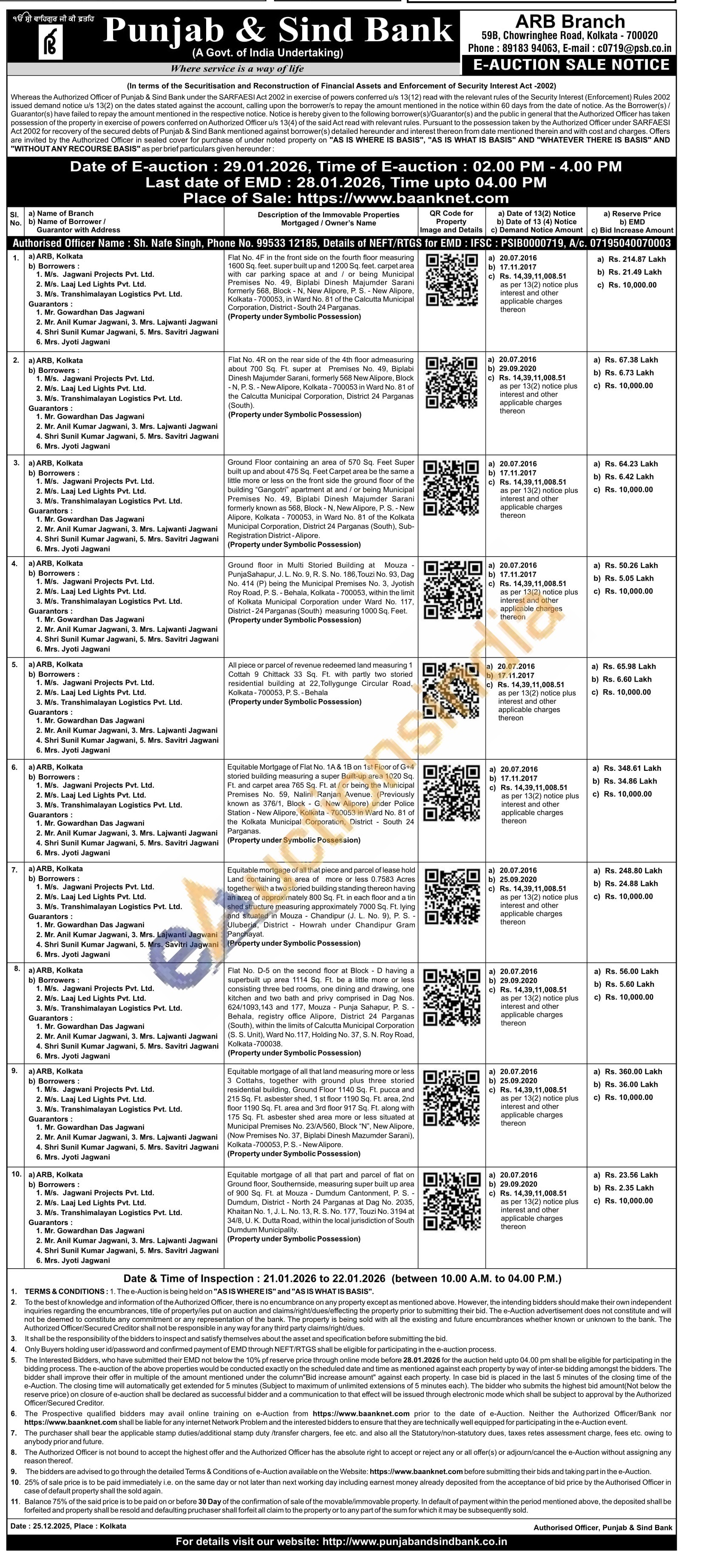 Equitable mortgage of all that part and parcel of flat on Ground floor, Southernside, measuring super built up area of 900 Sq. Ft. at Mouza - Dumdum Cantonment, P. S. - Dumdum, District - North 24 Parganas at Dag No. 2035, Khaitan No. 1, J. L. No. 13, R. S. No. 177, Touzi No. 3194 at 34/8, U. K. Dutta Road, within the local jurisdiction of South Dumdum Municipality. (Property under Symbolic Possession)