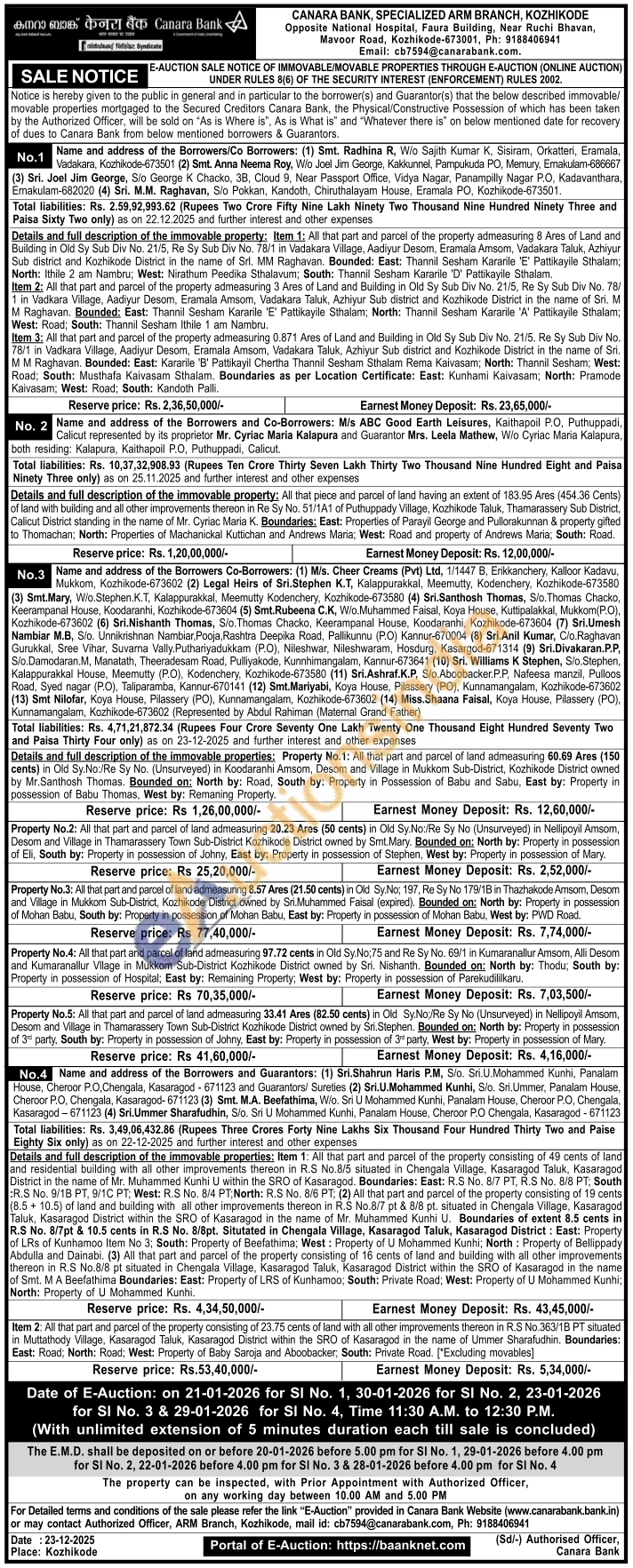 All that part and parcel of land admeasuring 97.72 cents in Old Sy.No:75 and Re Sy No. 69/1 in Kumaranallur Amsom, Alli Desom and Kumaranallur Vilage in Mukkom Sub-District Kozhikode District owned by Sri. Nishanth. Bounded on: North by: Thodu; South by: Property in possession of Hospital; East by: Remaining Property; West by: Property in possession of Parekudililkaru
