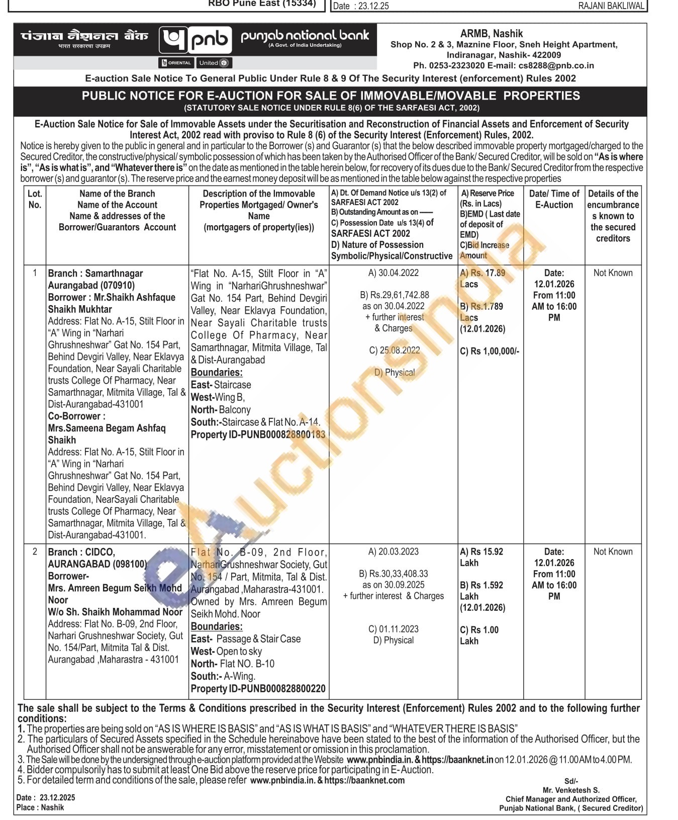 "Flat No. A-15, Stilt Floor in "A" Wing in "Narhari Ghrushneshwar" Gat No. 154 Part, Behind Devgiri Valley, Near Eklavya Foundation, Near Sayali Charitable trusts College Of Pharmacy, Near Samarthnagar, Mitmita Village, Tal & Dist-Aurangabad