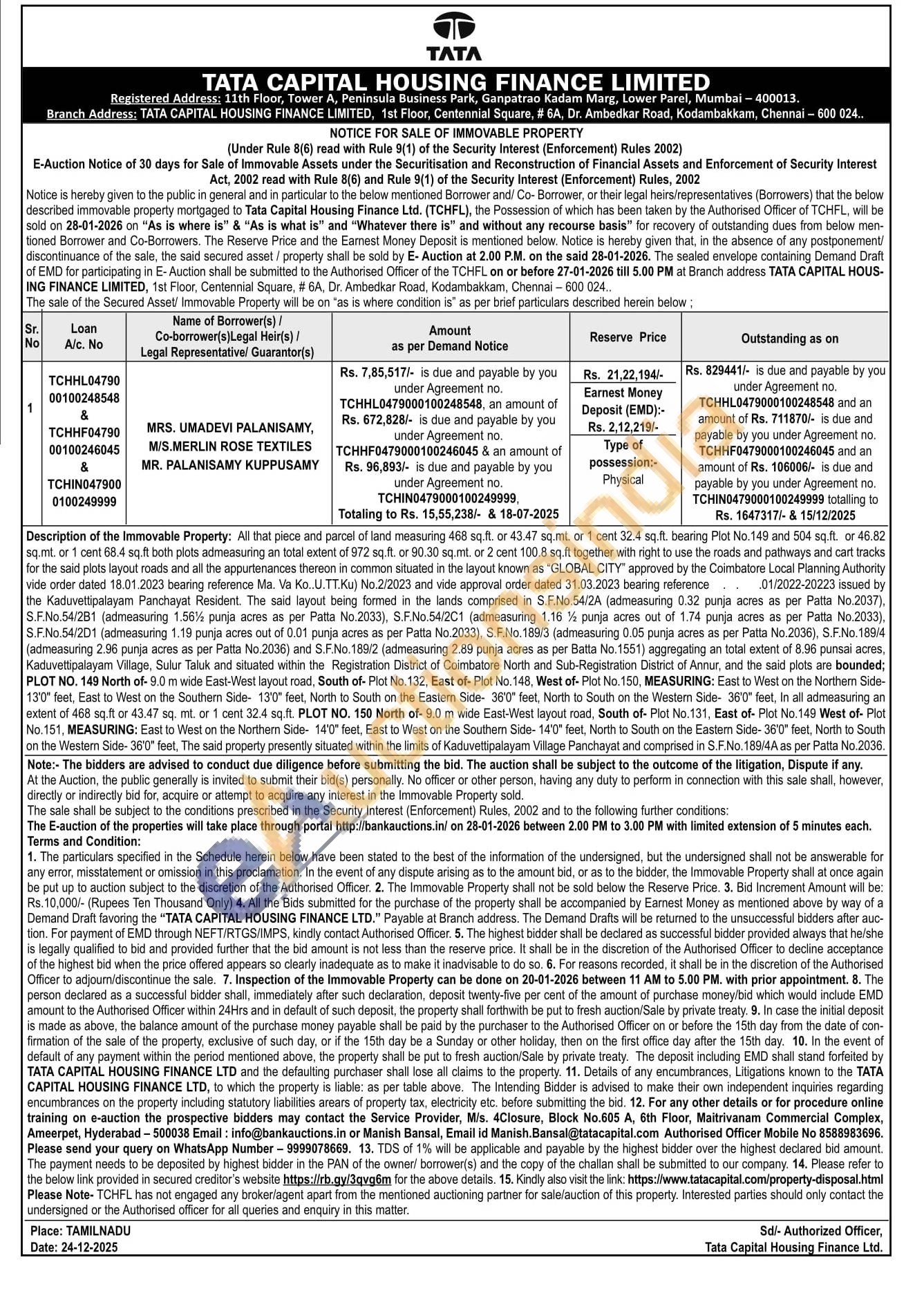 All that piece and parcel of land measuring 468 sq.ft. or 43.47 sq.mt. or 1 cent 32.4 sq.ft. bearing Plot No.149 and 504 sq.ft. or 46.82 sq.mt. or 1 cent 68.4 sq.ft both plots admeasuring an total extent of 972 sq.ft. or 90.30 sq.mt, or 2 cent 100.8 sq.ft together with right to use the roads and pathways and cart tracks for the said plots layout roads and all the appurtenances thereon in common situated in the layout known as "GLOBAL CITY" approved by the Coimbatore Local Planning Authority vide order dated 18.01.2023 bearing reference Ma. Va Ko..U.TT.Ku) No.2/2023 and vide approval order dated 31.03.2023 bearing reference 01/2022-20223 issued by the Kaduvettipalayam Panchayat Resident. The said layout being formed in the lands comprised in S.F.No.54/2A (admeasuring 0.32 punja acres as per Patta No.2037), S.F.No.54/281 (admeasuring 1.56% punja acres as per Patta No.2033), S.F.No.54/2C1 (admeasuring 1.16½ punja acres out of 1.74 punja acres as per Patta No.2033), S.F.No.54/201 (admeasuring 1.19 punja acres out of 0.01 punja acres as per Patta No.2033), S.F.No. 189/3 (admeasuring 0.05 punja acres as per Patta No.2036), S.F.No. 189/4 (admeasuring 2.96 punja acres as per Patta No.2036) and S.F.No. 189/2 (admeasuring 2.89 punja acres as per Batta No.1551) aggregating an total extent of 8.96 punsai acres, Kaduvetlipalayam Village, Sulur Taluk and situated within the Registration District of Coimbatore North and Sub-Registration District of Annur, and the said plots are bounded; PLOT NO. 149 North of- 9.0 m wide East-West layout road, South of- Plot No. 132. East of- Plot No. 148, West of- Plot No.150