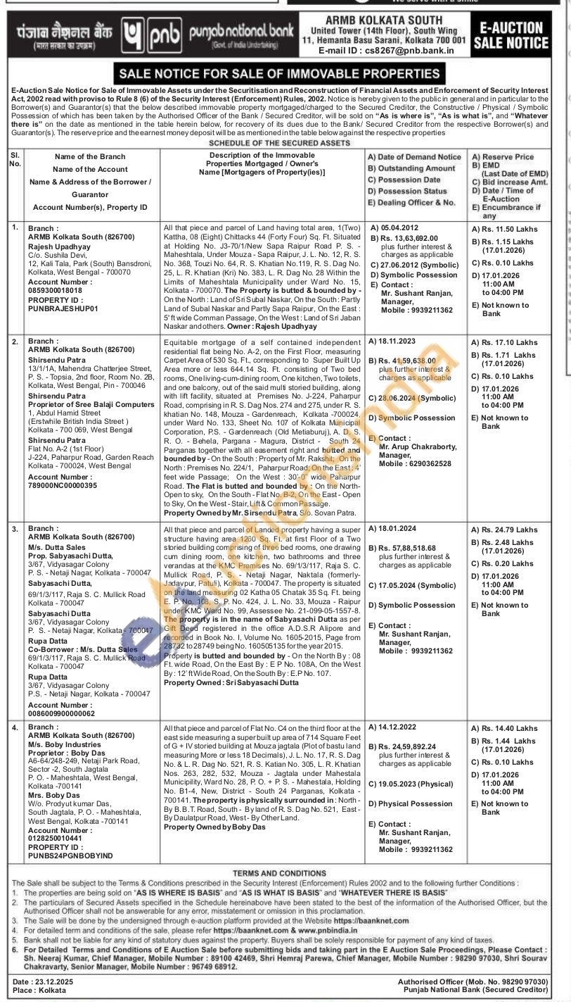 All that piece and parcel of Land having total area, 1(Two) Kattha, 08 (Eight) Chittacks 44 (Forty Four) Sq. Ft. Situated at Holding No. J3-70/1/New Sapa Raipur Road P. S. -Maheshtala, Under Mouza-Sapa Raipur, J. L. No. 12, R. S. No. 368, Touzi No. 64, R. S. Khatian No. 119, R. S. Dag No. 25, L. R. Khatian (Kri) No. 383, L. R. Dag No. 28 Within the Limits of Maheshtala Municipality under Ward No. 15, Kolkata - 700070. The Property is butted & bounded by -On the North: Land of Sri Subal Naskar, On the South: Partly Land of Subal Naskar and Partly Sapa Raipur, On the East: 5' ft wide Comman Passage, On the West: Land of Sri Jaban Naskar and others. Owner: Rajesh Upadhyay