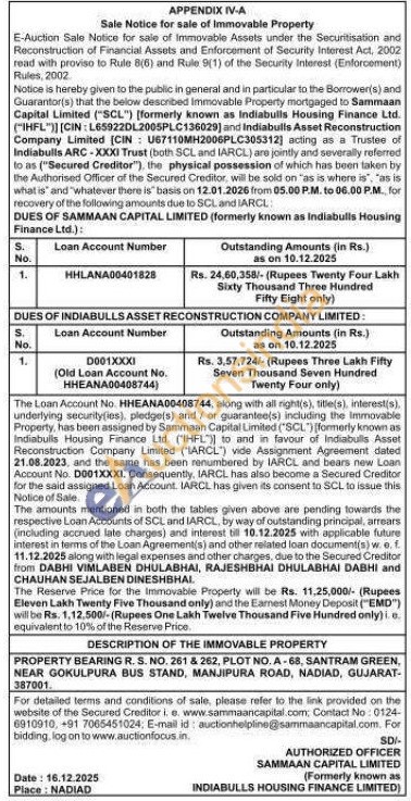 DESCRIPTION OF THE IMMOVABLE PROPERTY : PROPERTY BEARING R. S. NO. 261 & 262, PLOT NO. A-68, SANTRAM GREEN, NEAR GOKULPURA BUS STAND, MANJIPURA ROAD, NADIAD, GUJARAT-387001.