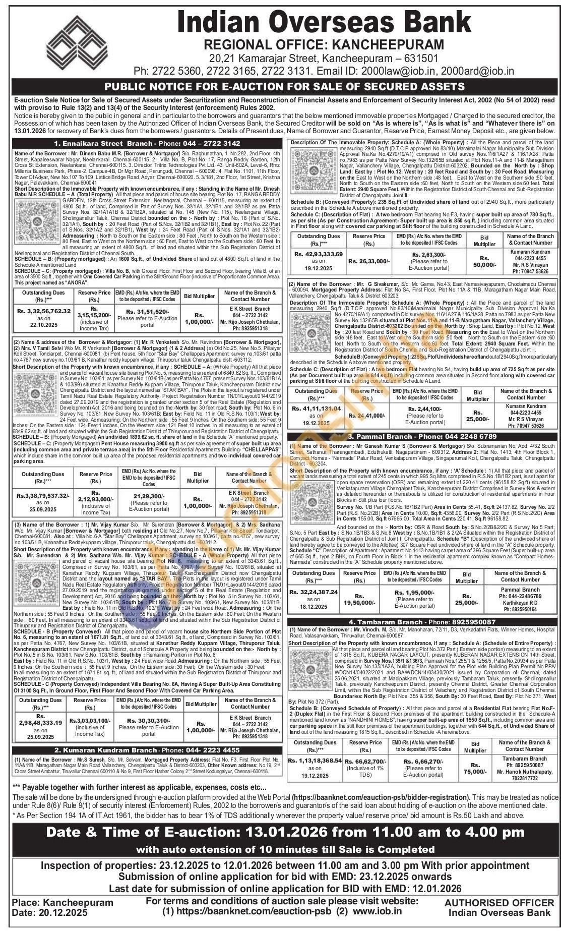 Description Of The Immovable Property: Schedule A: (Whole Property): All the Piece and parcel of the land measuring 2940 Sq.ft (D.T.C.P approved No.83/10) Maraimalai Nagar Municipality Sub Division Approval Na.Ka No.4270/19/A1) comprised in Old survey Nos. 116/1A27 & 116/1A28, Patta no.7983 as per Patta New Survey No. 132/65B situated at Plot Nos.11-A and 11-B Maragatham Nagar, Vallanchery Village, Chengalpattu District-603202. Bounded on the North by: Shop Land; East by: Plot No.12; West by: 20 feet Road and South by: 30 Feet Road. Measuring on the East to West on the Northem side:48 feet, East to West on the Southern side :50 feet, North to South on the Eastem side :60 feet, North to South on the Westem side:60 feet. Total Extent: 2940 Square Feet. Within the Registration District of South Chennai and Sub-Registration District of Chengalpattu Joint II.