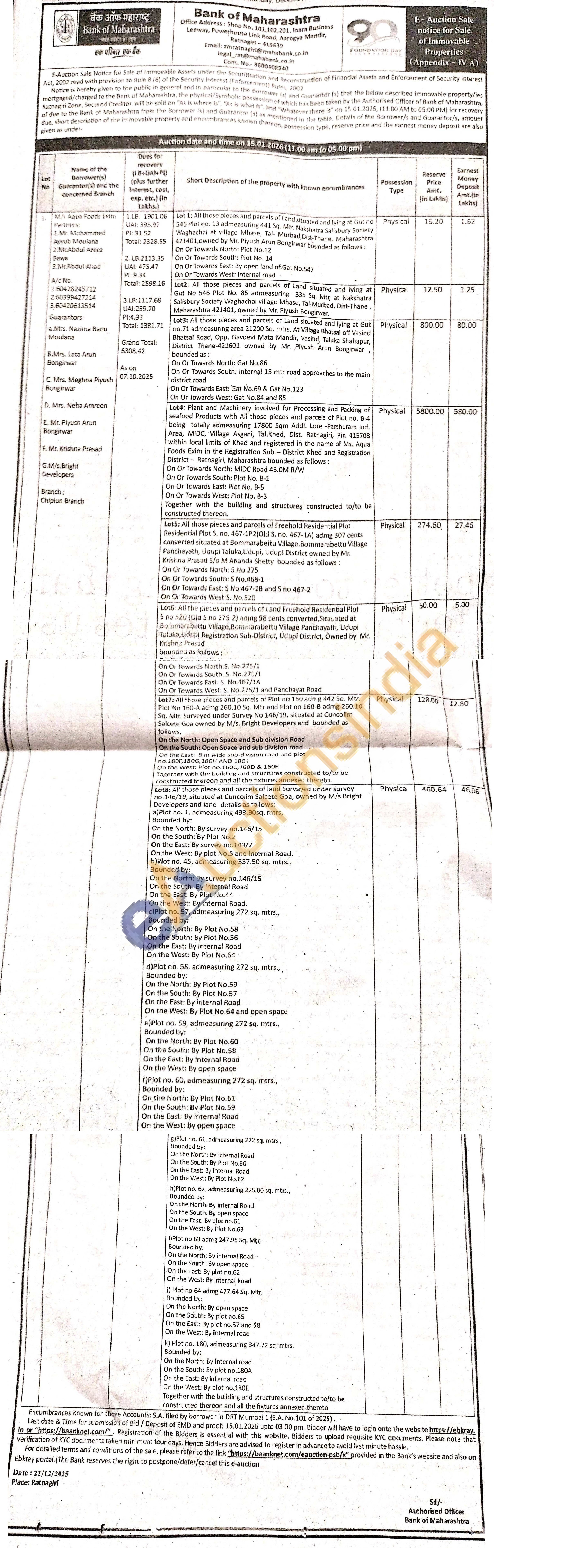 Lot7: All those picces and parcels of Plot no 160 admg 442 Sq. Mtr. Plot No 160-A admg 260.10 Sq. Mtr and Plot no 160-B admg 260.10 Sq. Mtr. Surveyed under Survey No 146/19, situated at Cuncolim Salcete Goa owned by M/s. Bright Developers and bounded as follows, On the North: Open Space and Sub division Road On the South: Open Space and sub division road On the East. 8 m wide sub-division road and plot no.180F, 180G, 180H AND 1801 On the West: Plot no. 160C, 1600 & 160E Together with the building and structures constructed to/to be constructed thereon and all the fixtures annexed thereto